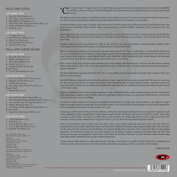 Треклист 1. LPCan't We Be FriendsIsn't This a Lovely DayMoonlight in VermontThey Can't Take That Away from MeUnder a Blanket of BlueTenderlyA Foggy DayStars Fell on AlabamaCheek to CheekThe Nearness of YouApril in Paris2. LPDon't Be That WayMakin' WhoopeeThey All LaughedComes LoveAutumn in New YorkIt Ain't Necessarily SoLet's Do It (Let's Fall in Love)Stompin' at the SavoyI Won't DanceGee, Baby, Ain't I Good to You?Summertime3. LPLet's Call the Whole Thing offThese Foolish Things (Remind Me of You)I've Got My Love to Keep Me WarmWillow Weep for MeI'm Puttin' All My Eggs in One BaskeA Fine RomanceIll WindLove is Here to StayI Get a Kick out of YouLearnin' the Blues