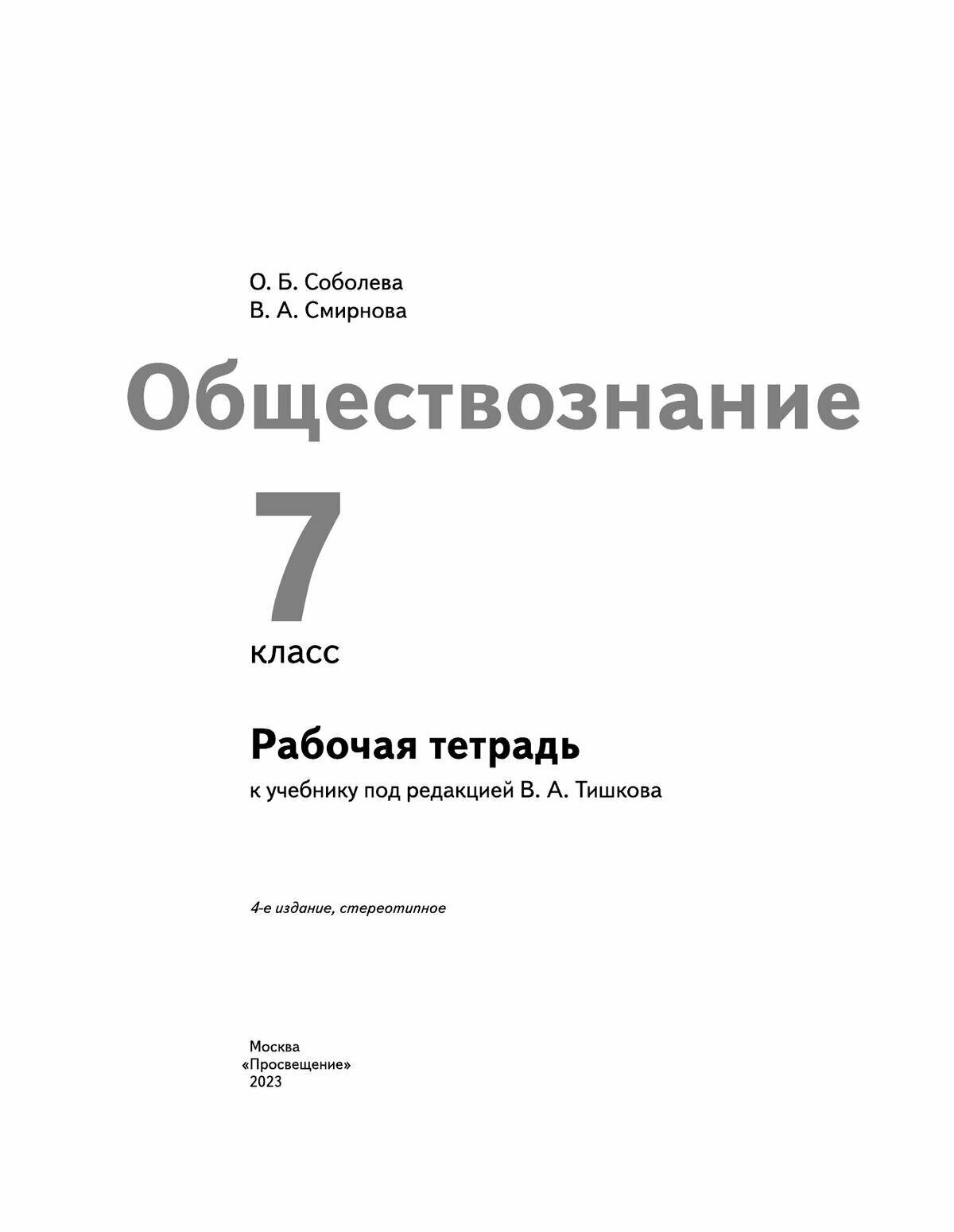 Обществознание. 7 класс. Рабочая тетрадь к учебнику под ред. В.А.Тишкова (Соболева Ольга Борисовна, Смирнова Вероника Александровна); Просвещение, 2023
