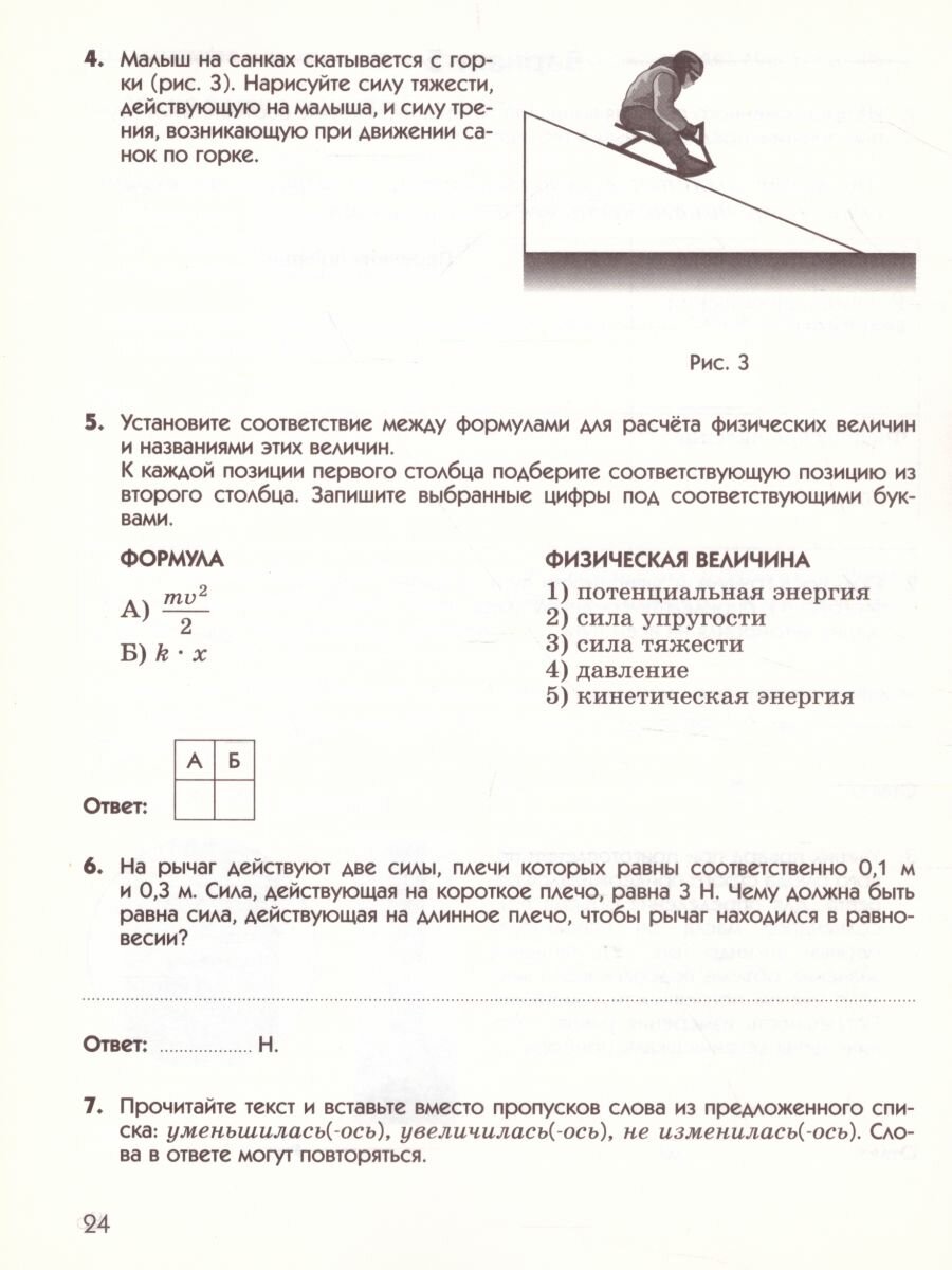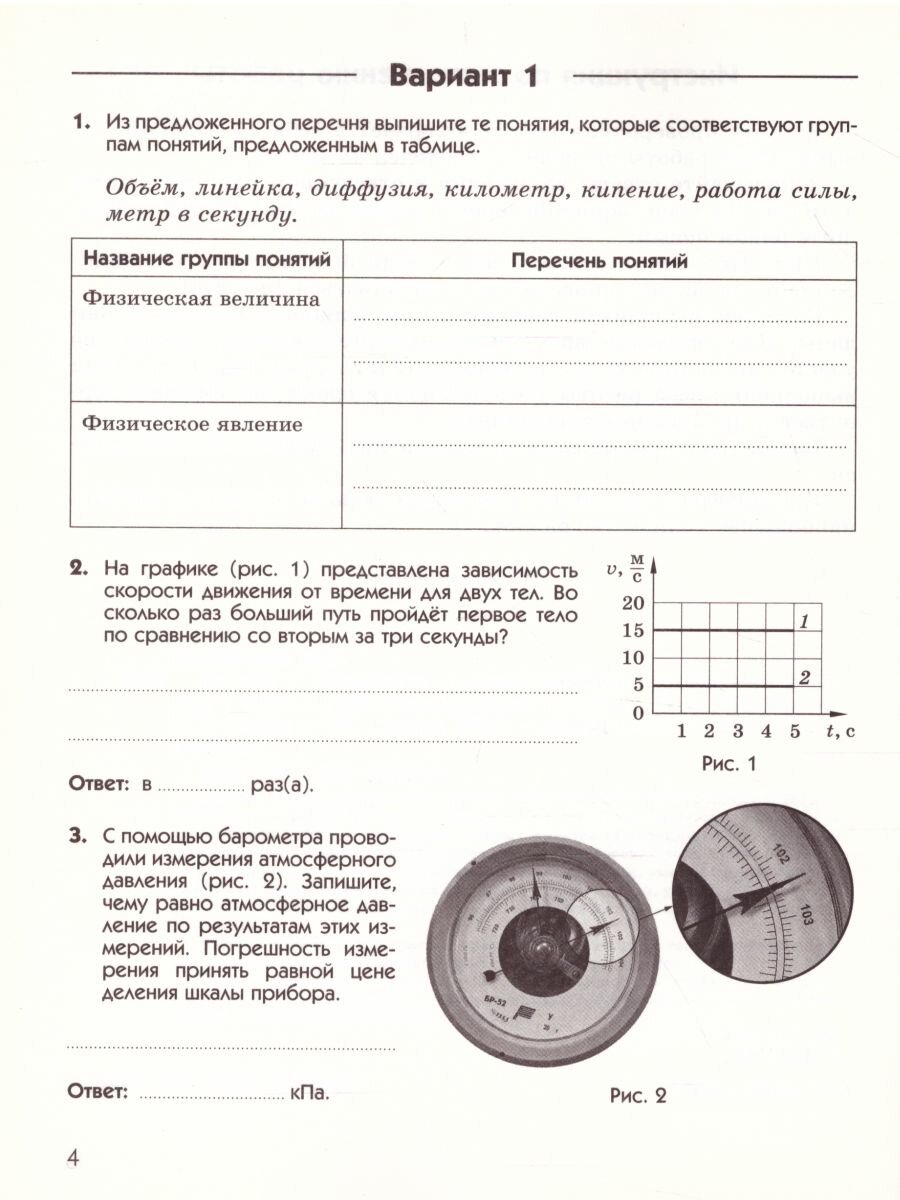 Данное пособие содержит материал, необходимый для подготовки к всероссийской проверочной работе по физике в 7 классе. В него включено 6 вариантов проверочных работ, в каждой из которых имеется 11 заданий из всех разделов курса физики 7 класса, позволяющих проверить усвоение учащимися понятийного аппарата, овладение методологическими знаниями, умение применять знания при объяснении физических явлений и решения задач, умение работать с информацией, представленной в различном виде (графиками, схемами, таблицами, рисунками). В конце пособия даны ответы и критерии оценивания, а так же рекомендации для учителя по подготовке обучающихся к выполнению работ.