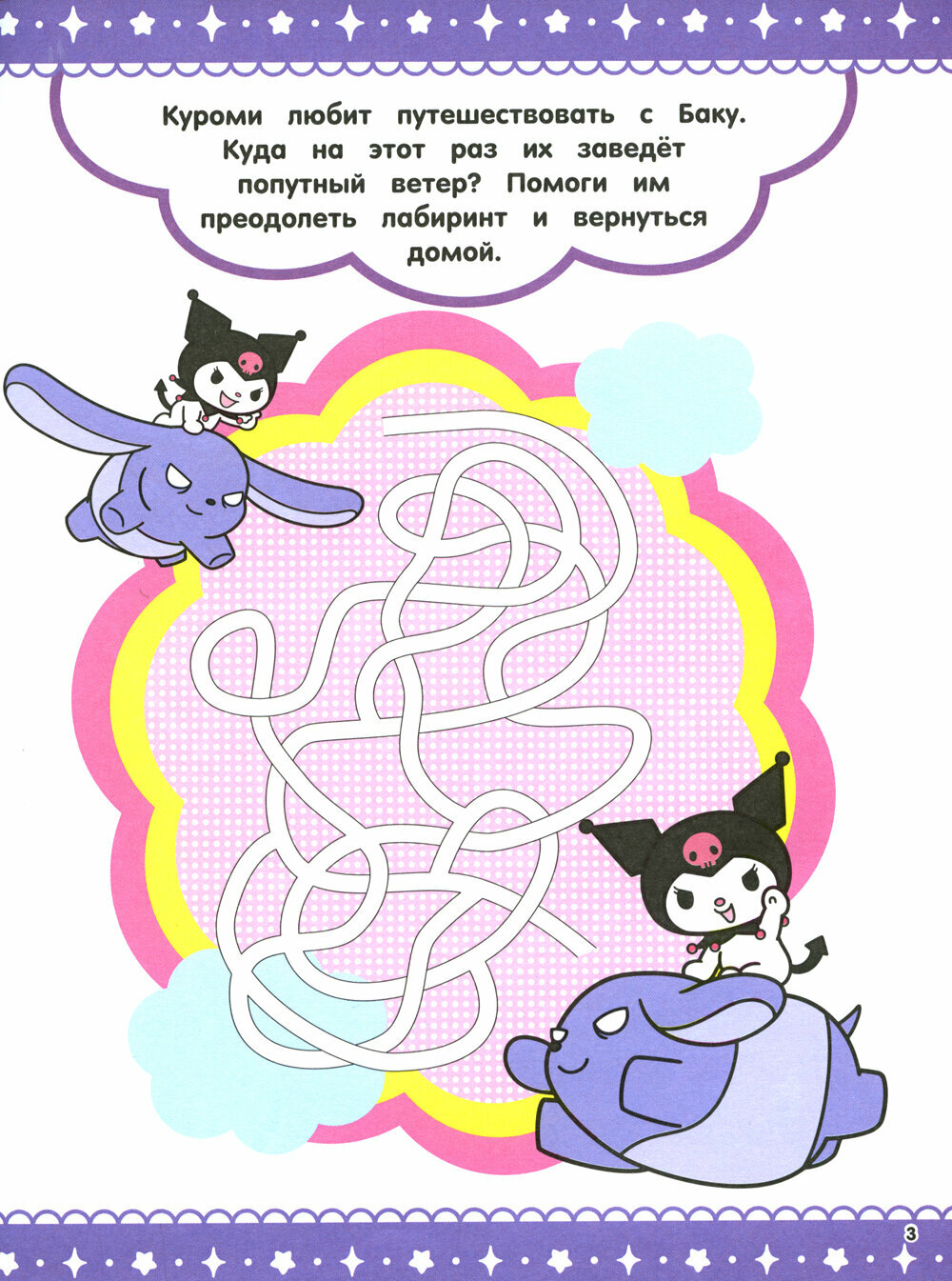 Озорная Куроми любит повеселиться с друзьями! А что может быть интереснее, чем отправиться в незабываемое путешествие по играм и головоломкам? Смелее! Тебя ждёт непростой путь: запутанные лабиринты, загадочные головоломки, множество игр и шалостей. И пусть смекалка и задор помогут тебе преодолеть все препятствия на пути и получить в награду яркие наклейки!