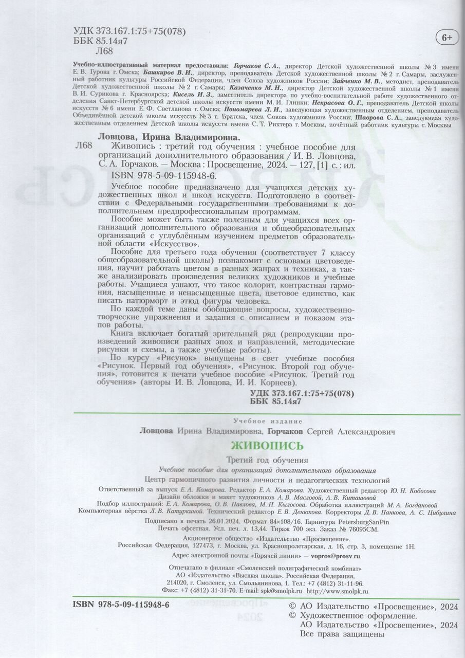 Живопись. Третий год обучения. Учебное пособие для дополнительного предпрофессионального образования (Ирина Владимировна Ловцова, Сергей Александрович Горчаков); Просвещение, 2025