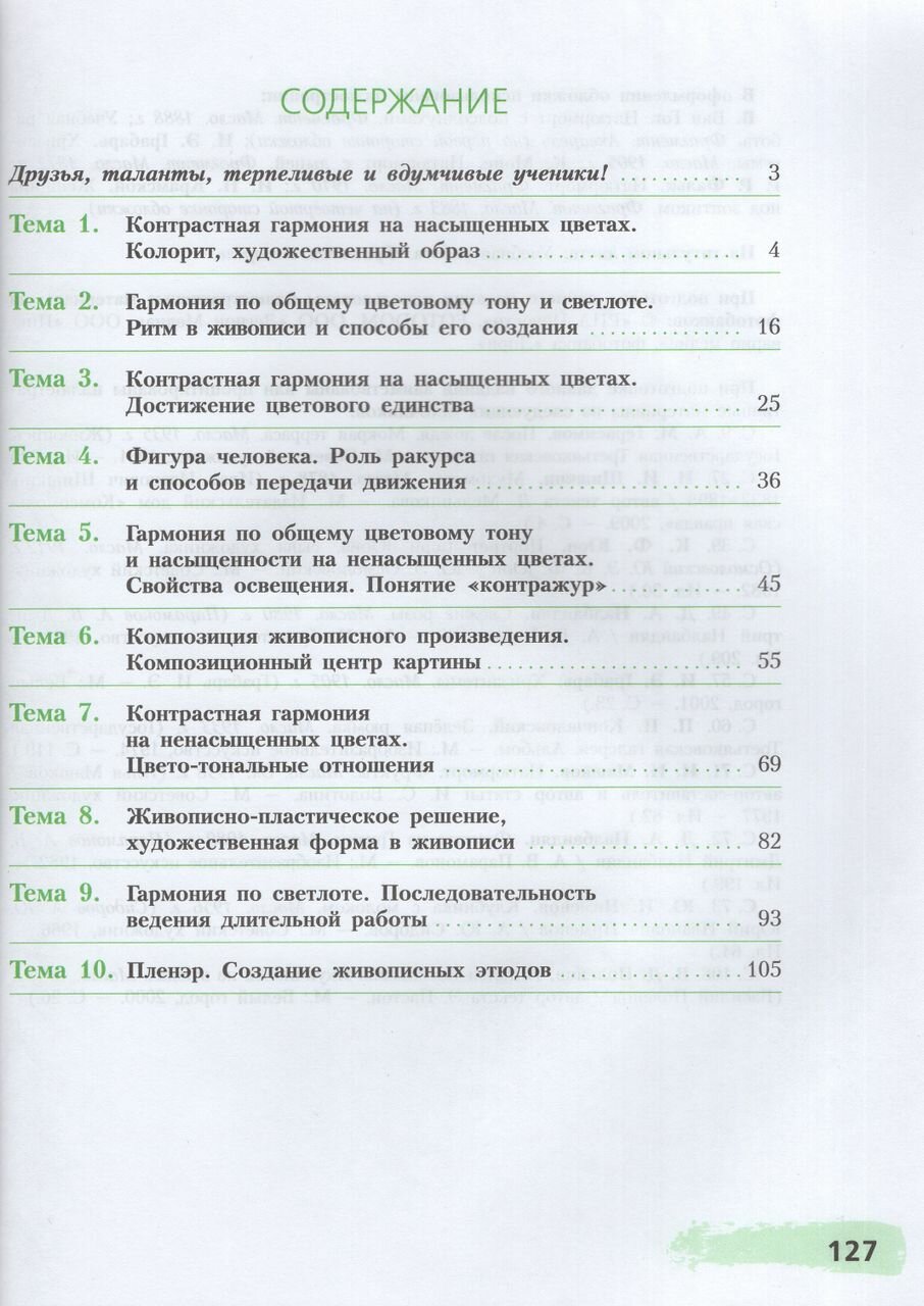 Книга включает богатый зрительный ряд (репродукции произведений живописи разных эпох и направлений, методические рисунки и схемы, а также учебные работы).