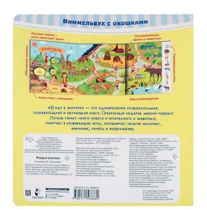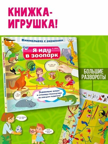 Яркая книга-виммельбух с окошками и секретиками — прекрасный подарок любому ребёнку. Малыш узнает много нового и интересного о животных, поиграет в развивающие игры, потренирует мелкую моторику, внимание, память и воображение. Книга выполнена из плотного картона, поэтому прослужит долго. Чудесная книга-игра становится ещё более привлекательной благодаря отличному полиграфическому качеству. «Я иду в зоопарк» — это одновременно развлекательная, познавательная и обучающая книга. Отличный выбор любящих родителей!