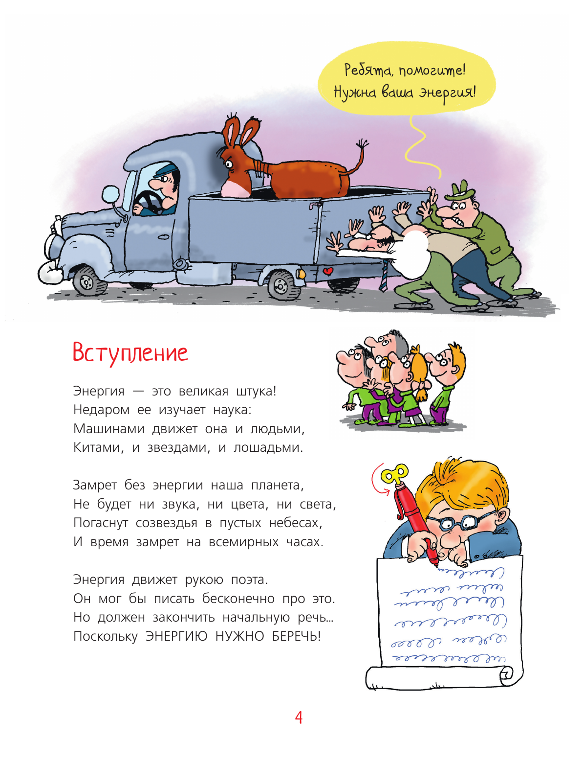 Что такое энергия? Откуда она берется и куда теряется? Как изменяется и передвигается? Зачем ее беречь и чем она помогает людям? На эти и другие очень важные вопросы отвеча- ют известный поэт Андрей Усачев — стихами и замечательный художник дядя Коля Ворон- цов — рисунками! Уверены, что на уроки в школе теперь будет ходить интереснее. Для младшего и среднего школьного возраста.
