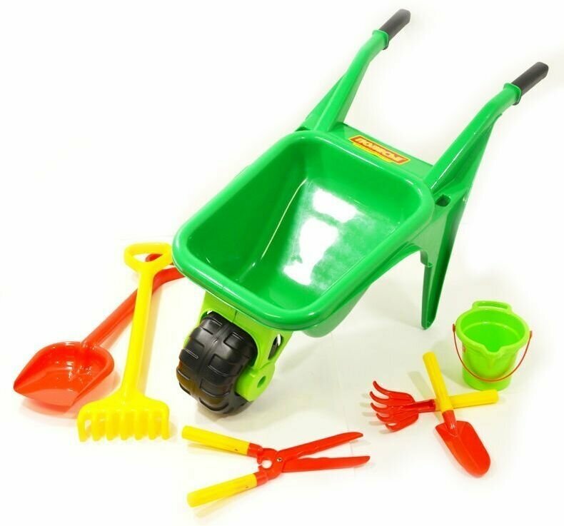 | Комплектация | Тачка - 1 шт, лопата - 2 шт, грабли - 2 шт, ведро - 1 шт, ножницы - 1 шт. |