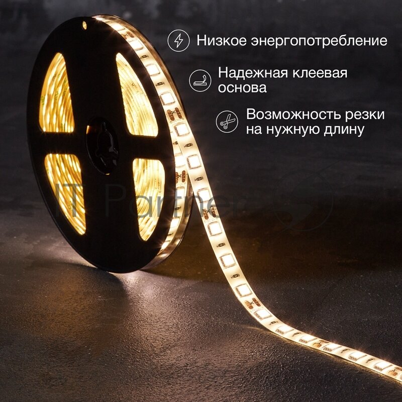Сервис сравнения цен СкидкаГИД предлагает сравнить цены на товар «Лента светодиодная Lamper 12В SMD5050 144Вт/м 60 LED/м 2700К 10мм 5м для БП с клеммами IP65 141-2028»