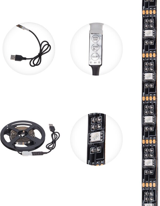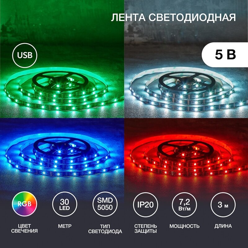 Лента светодиодная Lamper 5В SMD5050 72Вт/м 30 LED/м RGB 10мм 3м с USB коннектором черная IP20 141-2009