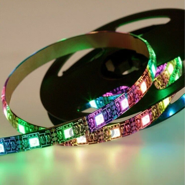 Светодиодная лента – гибкая лента на самоклеящейся основе, на которой установлены светодиоды. Может использоваться в подсветке интерьеров, изготовлении световых рекламных конструкций и пр. Работает от напряжения 5 В, поэтому при подключении к обычной бытовой сети 220 В потребуется источник питания 5 В.