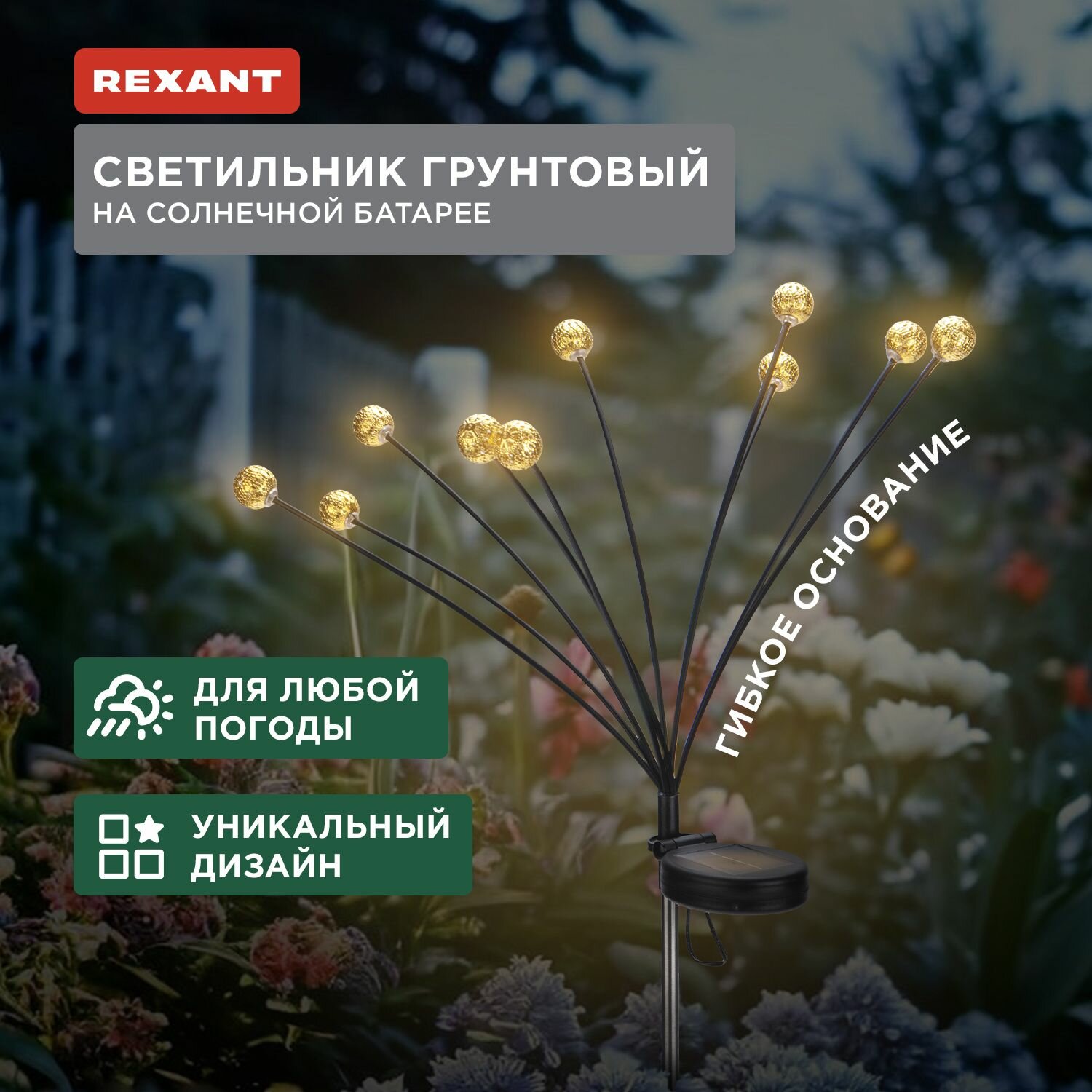 Светильник Rexant грунтовый Лалели 3000К встроенный аккумулятор солнечная панель коллекция Стамбул 602-2401