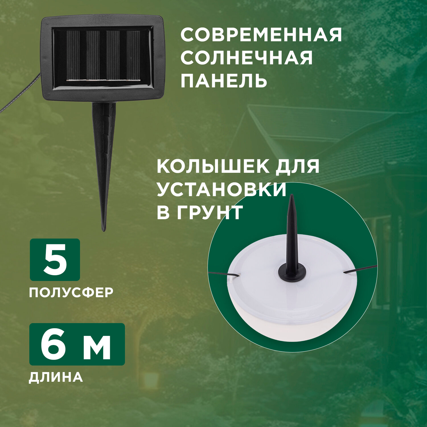 Грунтовый светильник Полусфера – это изысканный элемент садового декора, предназначенный для подсветки пешеходных дорожек, тропинок, цветников, а также различных архитектурных деталей ландшафта. Дизайн изделия создает загадочное свечение, словно волшебные светящиеся камни рассыпаны по вашему саду. Светильник оснащен солнечной панелью, которая поглощает солнечные лучи в течение дня и преобразует их в электрическую энергию. Накопленная энергия хранится во встроенном аккумуляторе, что позволяет светильнику автономно функционировать около 8 часов и освещать окружающую территорию вечером и ночью, не требуя подключения к электросети. Вечерние прогулки в саду, уютные посиделки под звездами и романтические ужины наполнятся волшебством благодаря этому особенному светильнику.