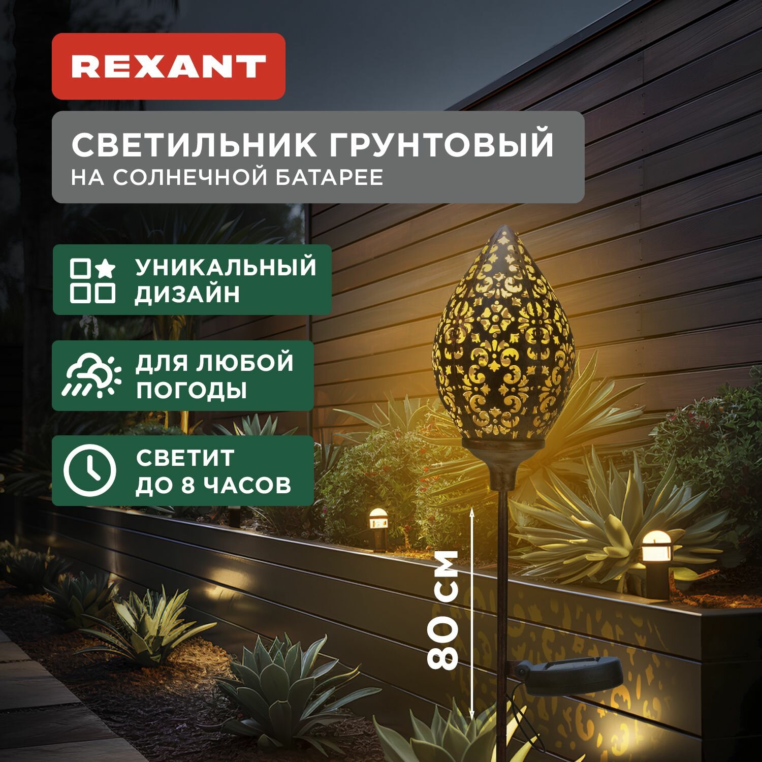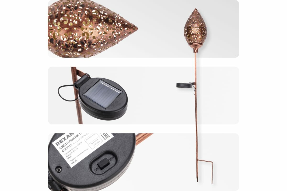 Светильник Rexant грунтовый Фатих 3000К встроенный аккумулятор солнечная панель коллекция Стамбул 602-2404