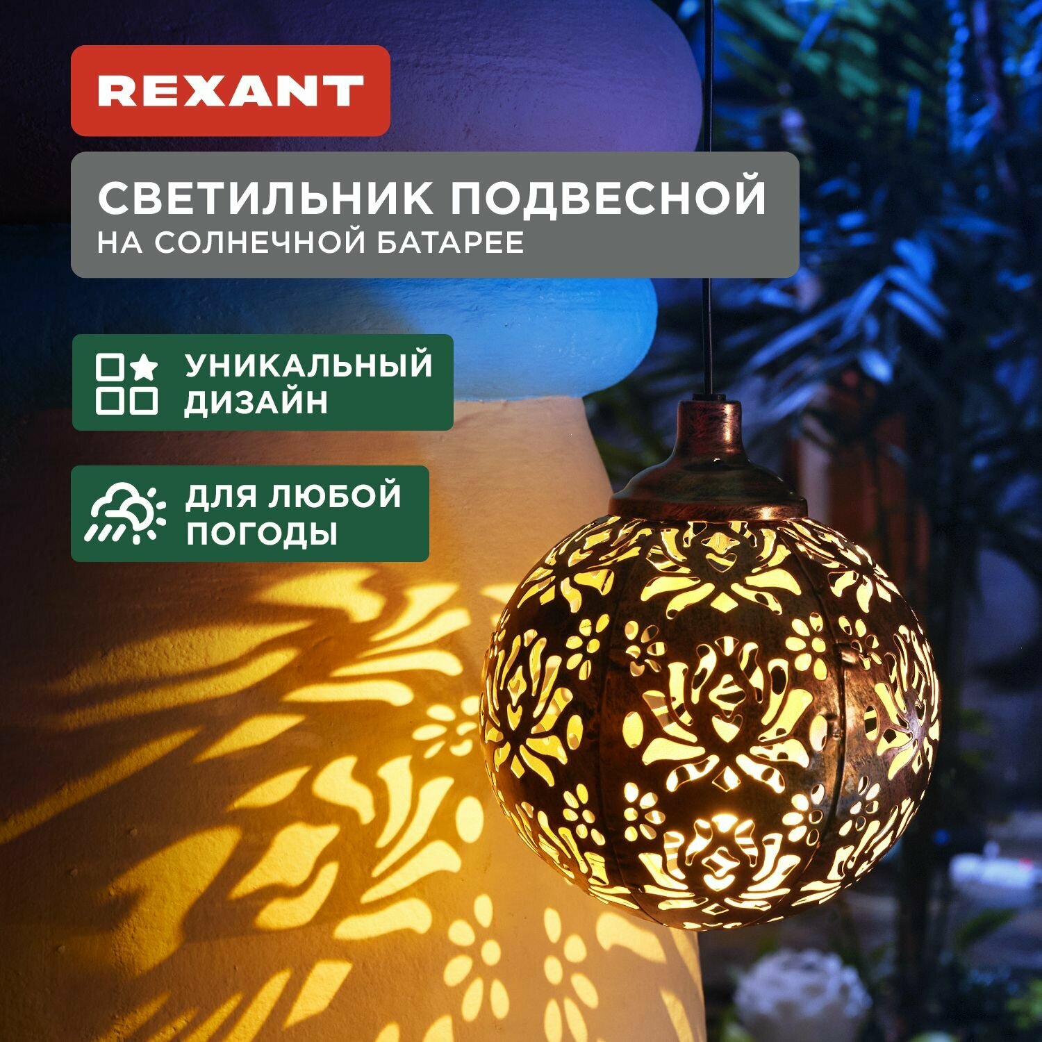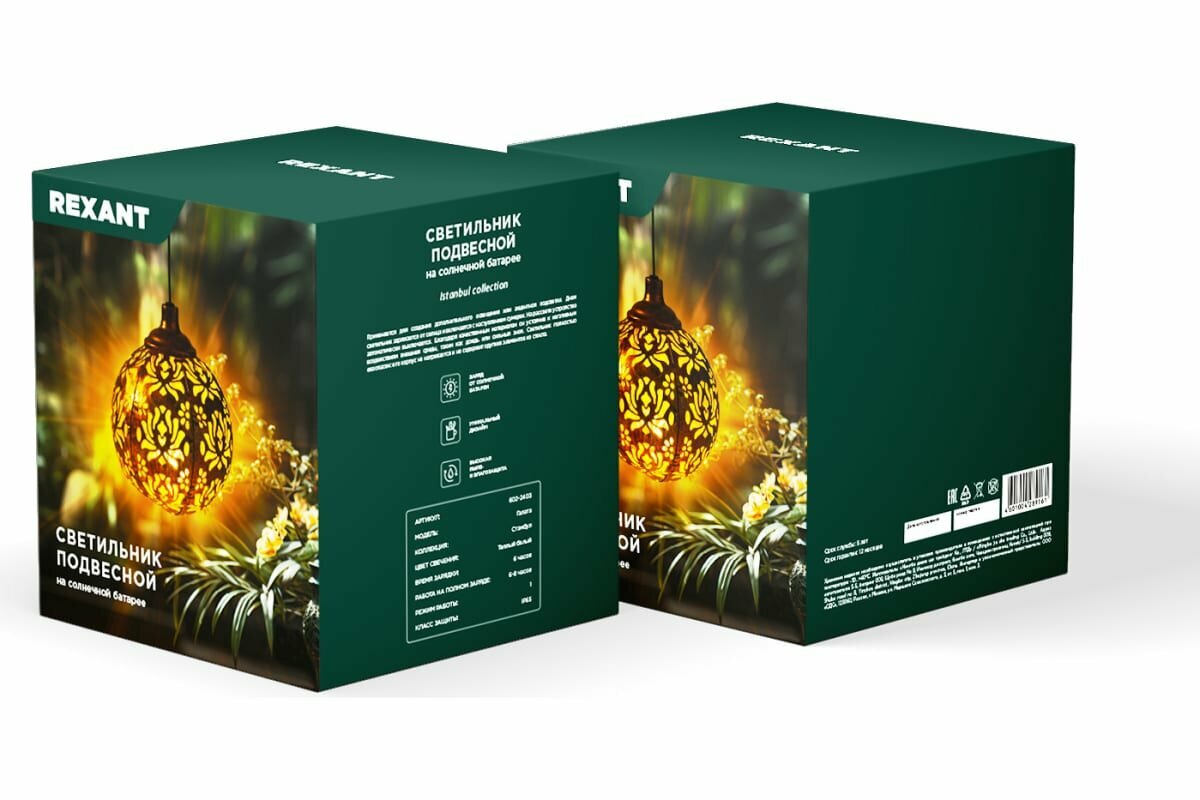 Светильник Rexant подвесной Галата 3000К встроенный аккумулятор солнечная панель коллекция Стамбул 602-2403