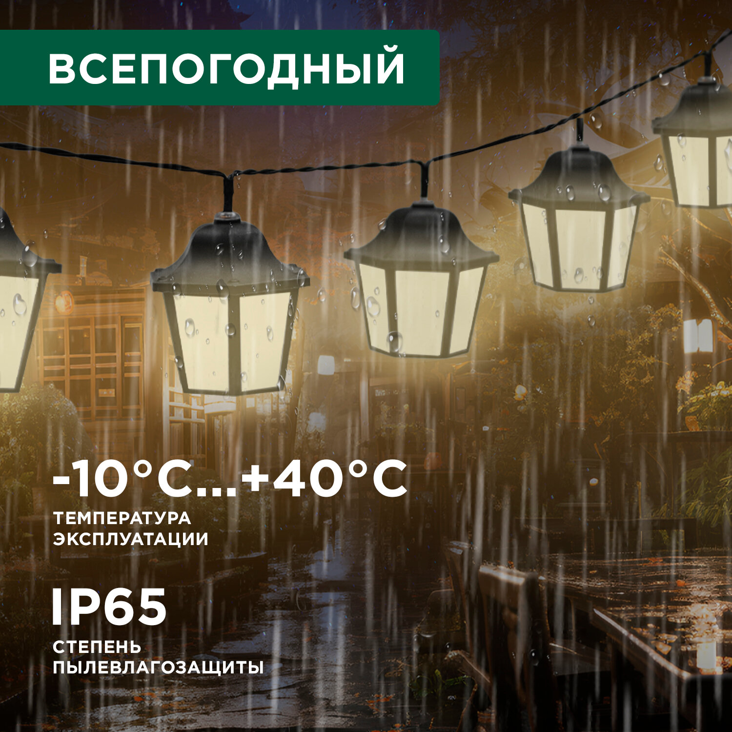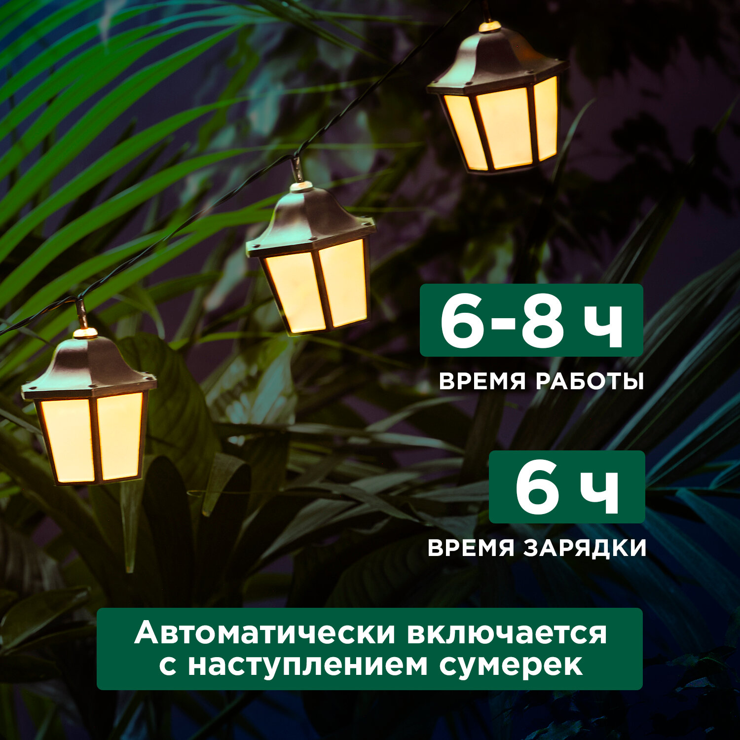 Садовая гирлянда Дэнлонг– это не только источник дополнительного освещения, но и элемент садового декора. Гирлянду можно повесить на террасе, веранде, в беседке, а также растянуть между деревьями или столбами вдоль садовых тропинок. На проводе располагаются маленькие классические фонарики, которые создают загадочную атмосферу, пронизанную духом древней китайской культуры. Гирлянда оснащена солнечной панелью, которая поглощает солнечные лучи в течение дня и преобразует их в электрическую энергию.