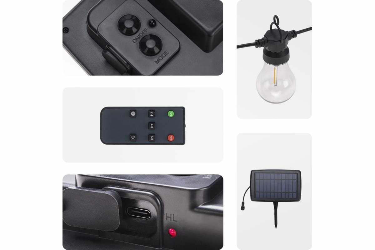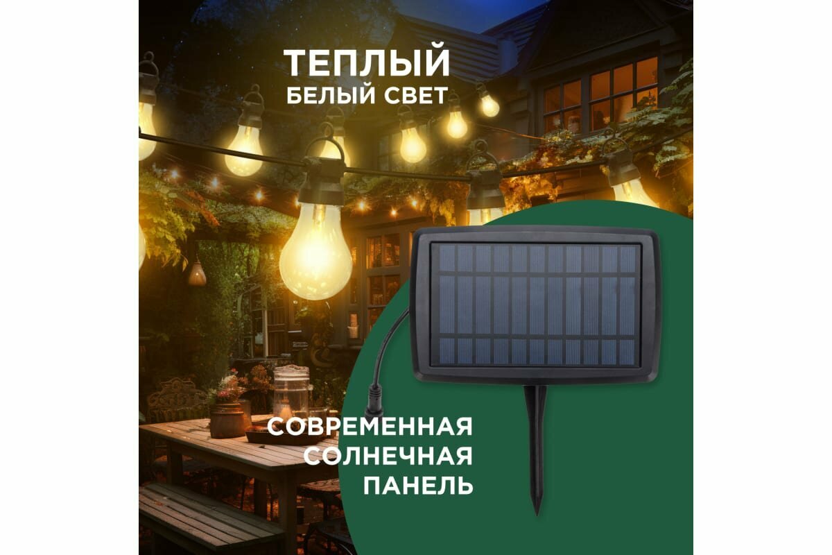 Гирлянда Канэри – это элемент садового декора, предназначенный для дополнительного освещения или акцентной подсветки. Изделие украсит своим светом дом, террасу, веранду, беседку, арку. Также с помощью гирлянды можно создать световые перетяжки между деревьями или столбами. ерный провод и ретро лампочки создают мягкое освещение, воплощая дух Лондона с его узкими улочками, уютными кафе и теплой уличной иллюминацией. Гирлянда оснащена солнечной панелью, которая поглощает солнечные лучи в течение дня и преобразует их в электрическую энергию.