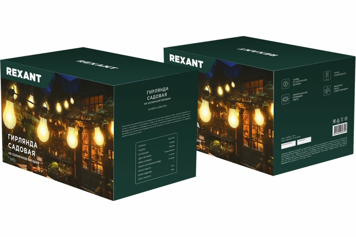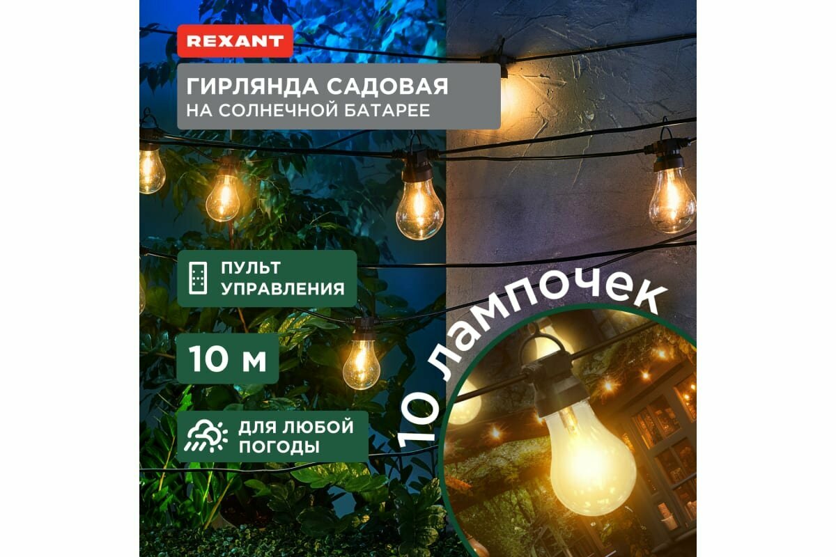 Гирлянда Rexant садовая Канэри 10м 3000К встроенный аккумулятор солнечная панель коллекция Лондон 602-2421