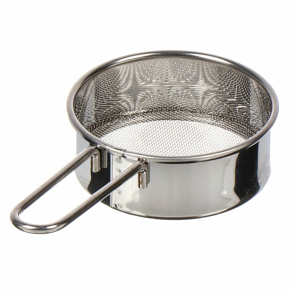Стальное ситечко небольшого размера поможет просеить сахарную пудру или какао, без каких либо комочков. Не занимает много места при хранении.