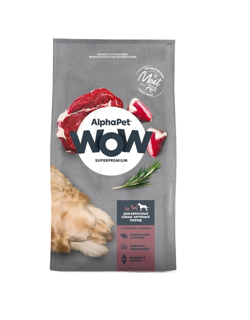 Сухой корм для собак крупных пород AlphaPet WOW Superpremium с говядиной и сердцем 3 кг