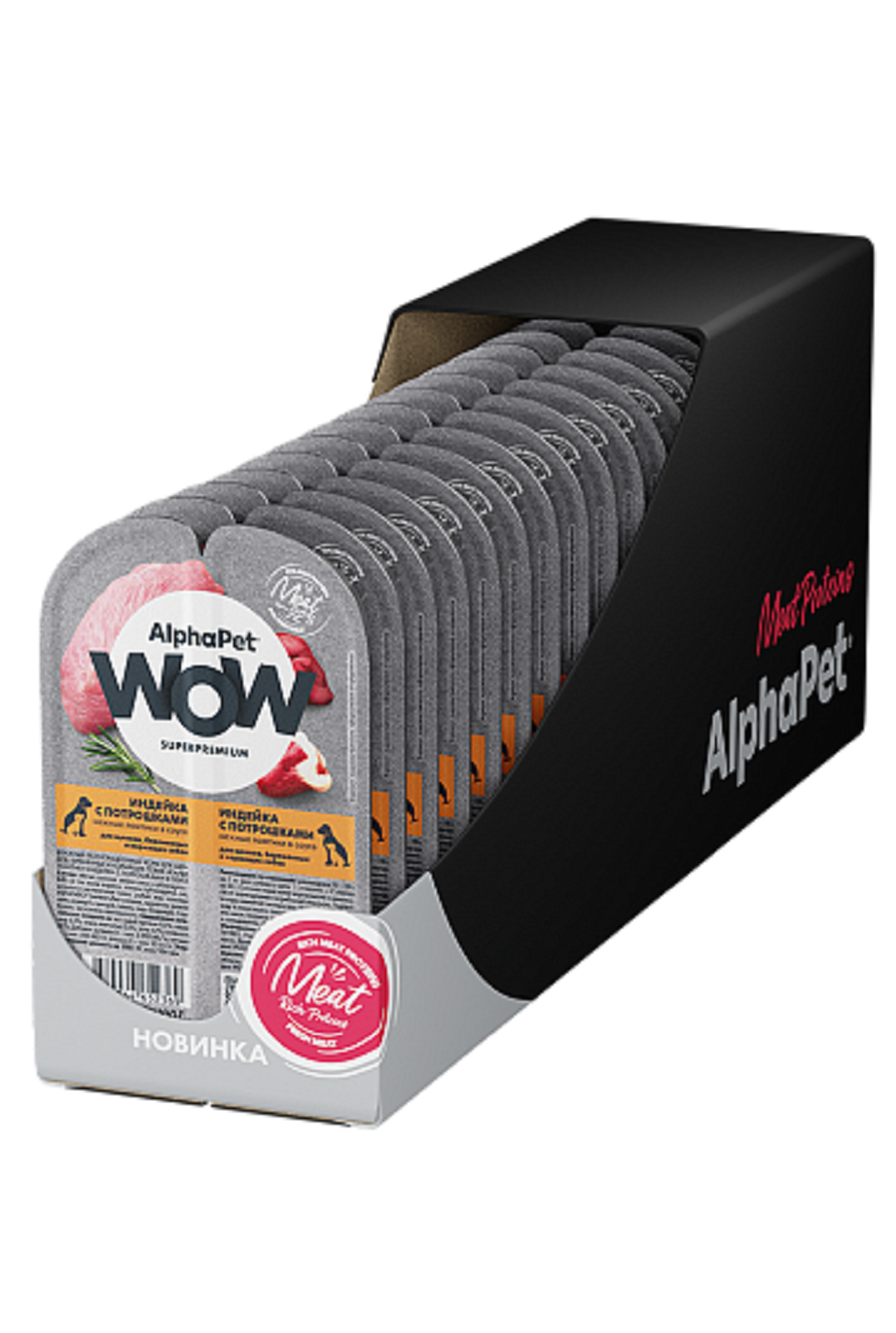 Влажный корм для щенков беременных и кормящих собак AlphaPet WOW Индейка с потрошками нежные ломтики в соусе 100 г