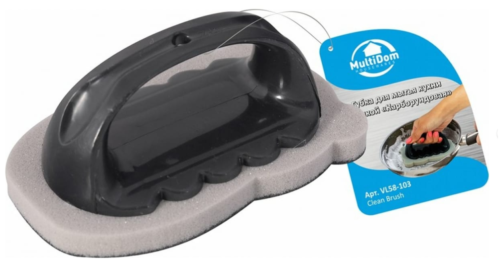 Применяется для чистки застаревшего жира, нагара, ржавчины со дна сковородок, кастрюль и кухонных поверхностей, без применения моющего средства. Карборунд - это твердые синтетические кристаллы, обладающие хорошей абразивностью и износостойкостью. Карборундовые зерна надежно закреплены на основе и не осыпаются во время чистки. Благодаря ручке, губку удобно держать в руке.