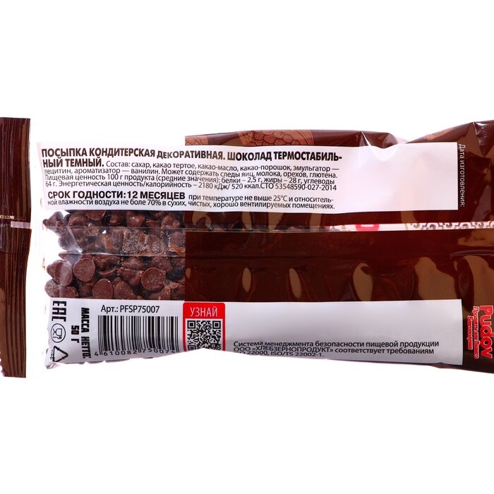 Посыпка кондитерская С.Пудовъ Шоколад темный термостабильный 50 г