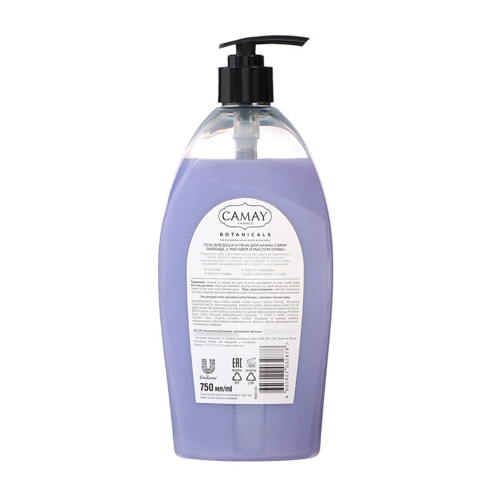 Гель для душа и пена для ванны Camay лаванда с магнием и маслом оливы 750 мл