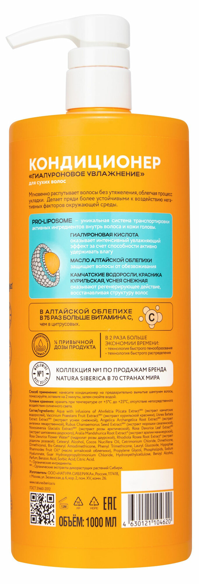Кондиционер для волос Natura Siberica Oblepikha Professional Гиалуроновое увлажнение для сухих волос 1 л