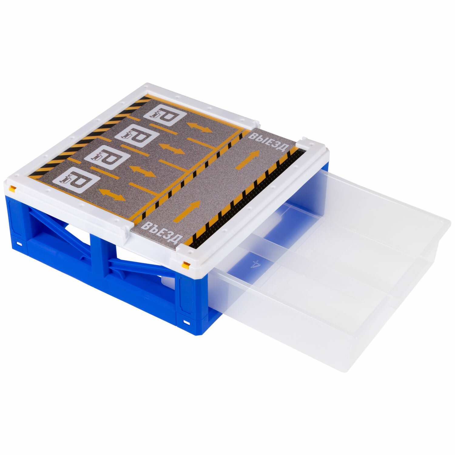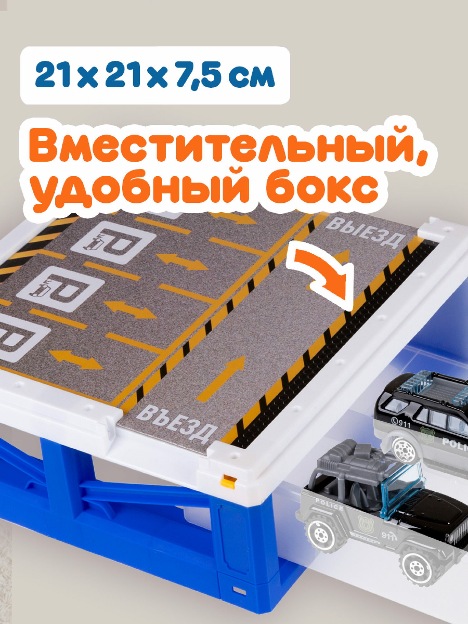 Парковка-ящик "Транспаркинг" от бренда 1TOY - это не просто паркинг для машин, а целый технопарк, среди ассортимента можно выбрать игровой набор, который порадует малыша - строительная площадка или полицейский участок. Их наполнение очень многообразно: набор машинок, состоящий из 3 штук, поле для игры - парковка для машинок, дорожные знаки, различные наклейки, элементы эстакады, АЗС и еще много других деталей! Все они вмещаются в контейнер, в котором удобно хранить игрушки и брать его с собой куда угодно. Такой транс-паркинг может стать отличным подарком на любой праздник. Набор подходит для ребенка старше 3-х лет.