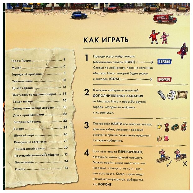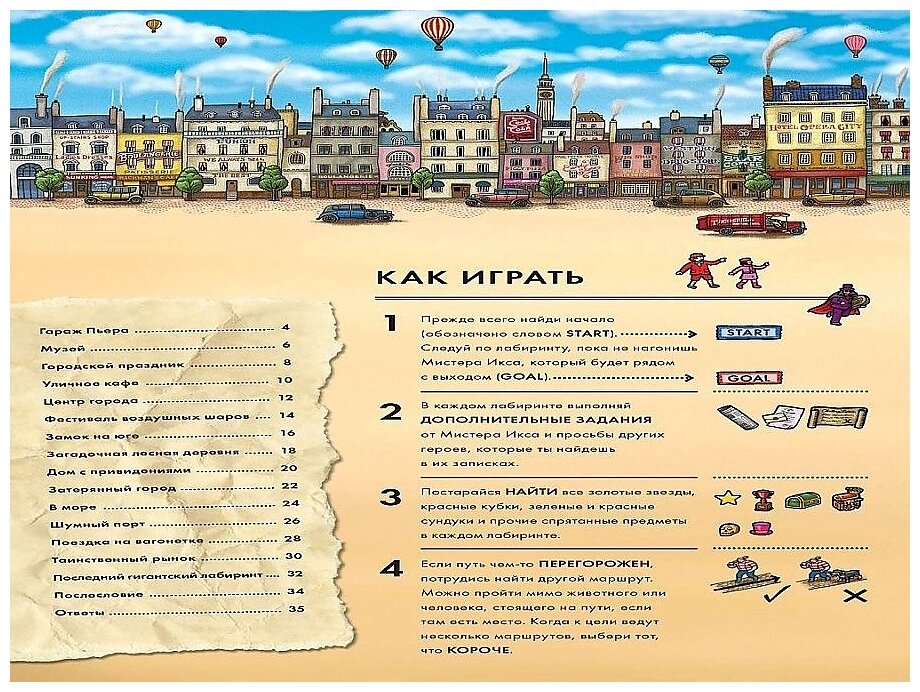 Детективу Пьеру, специалисту по лабиринтам, предстоит раскрыть новое дело! Неуловимый вор Мистер Икс похитил из музея древнюю волшебную плиту, которая способна устроить путаницу не только в Опера-Сити, но и во всем мире. Чтобы спасти любимый город, Пьер и его подруга Кармен бросаются в погоню. Ты забудешь обо всем на свете, пытаясь догнать Мистера Икса и пройти вместе с Пьером сквозь умопомрачительные лабиринты. А еще ведь нужно помочь всем, кто встречается на пути. Если тебе удастся выполнить все задания из этой книги, то можешь смело считать себя настоящим детективом!