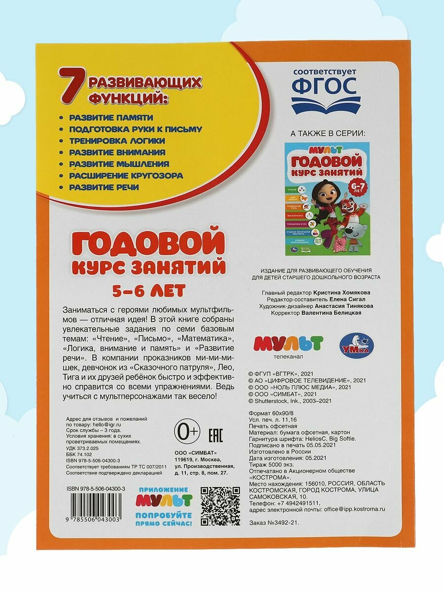 Годовой курс занятий 5-6 лет. Мильтмикс. Годовой курс занятий. 205х280мм (Сигал Евгений Иосифович); Умка, 2021