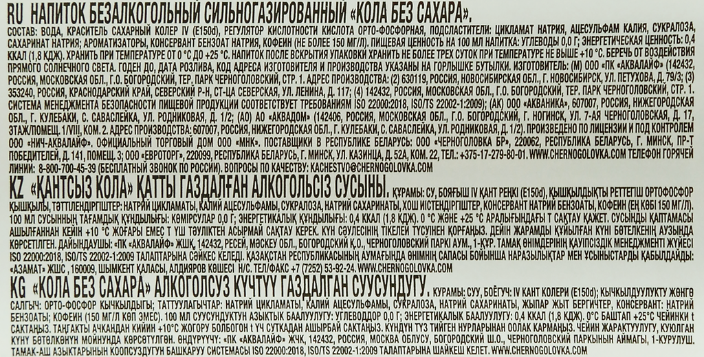 Кола без сахара Черноголовка такая же бодрящая, освежающая и вкусная, как и классическая!