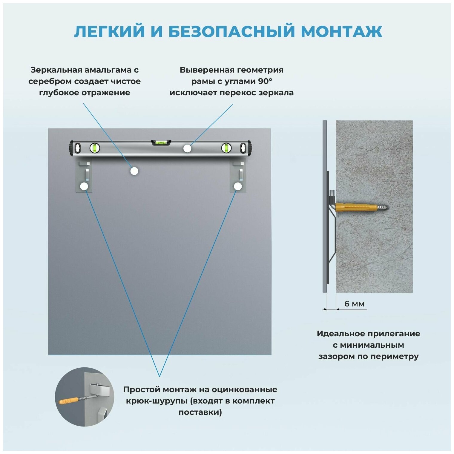 7 Rays' Spectrum — коллекция бестселлер от Wellsee, в которую включены стильные дизайнерские зеркала, придающие пространству дополнительную глубину. Зеркало с тонким черным контуром станет отличным комплиментом готовому интерьеру.В коллекцию входят актуальные формы и популярные размеры классических зеркал без подсветки и LED-зеркал, среди которых с легкостью можно найти идеальное решение для реализации любых дизайнерских идей. Универсальные квадратные зеркала идеально дополнят пространство ванной комнаты, прихожей либо спальни.ЗЕРКАЛО ТРЕТЬЕГО ПОКОЛЕНИЯ: AGC GLASS MIROX 3GБезупречное японское стекло — результат непрерывного развития технологий, оно соответствует единой системе защиты от коррозии и отсутствию точечного «цветения» с течением времени. Периметр зеркального полотна декорирован тонким черным контуром, при облучении которого, отверждаемые УФ-чернила значительно повышают прочность сцепления.Основное отличие фронтальной подсветки от фоновой заключается в пескоструйной обработке намеченного участка изделия. После такой обработки стекла равномерно яркий поток света заполняет матовую полосу на зеркальной поверхности.ЛУЧШИЕ КОНСТРУКТОРСКИЕ РЕШЕНИЯ ДЛЯ ВАШЕГО ДОМАВ зеркале с интерьерной и фронтальной подсветкой функциональность гармонично соединена с дизайном. Интерьерная подсветка, обрамляя зеркало по периметру, наполняет пространство светом и придает конструкции легкость. Фронтальный свет создает рассеянный комфортный для глаз поток, позволяющий рассмотреть каждую деталь отражения во время гигиенических и косметологических процедур.НАДЕЖНАЯ УПАКОВКАМногослойная упаковка из плотного гофрированного картона и пузырчатой пленки защищает все элементы от трещин и сколов, а специальная бумага – от появления микроцарапин на зеркальном полотне. На углы установлена дополнительная защита, а кромка зеркала со всех сторон укрыта вспененным полиэтиленом.Комплектация: 1 x зеркало с вилкой для подключения к розетке; 1 x крепежный комплект для настенного монтажа; 1 x инструкция по монтажу и эксплуатации; 1 x гарантийный талон.