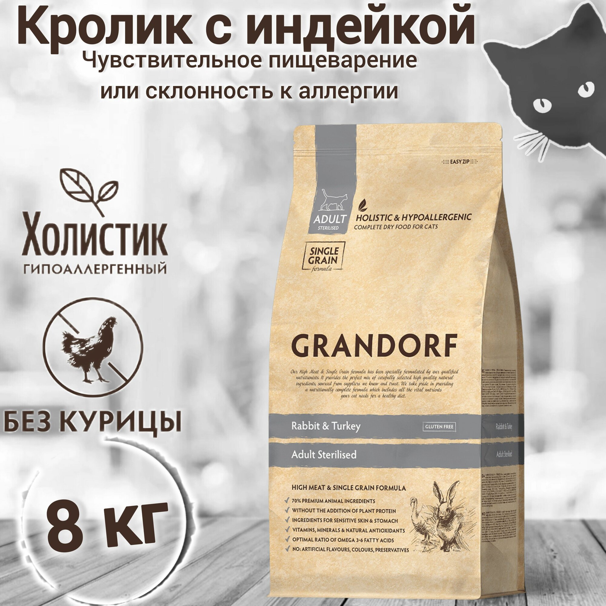 Grandorf Cat Sterilised Rabbit & Turkey корм для стерилизованных кошек и котов (Кролик и индейка 8 кг.)