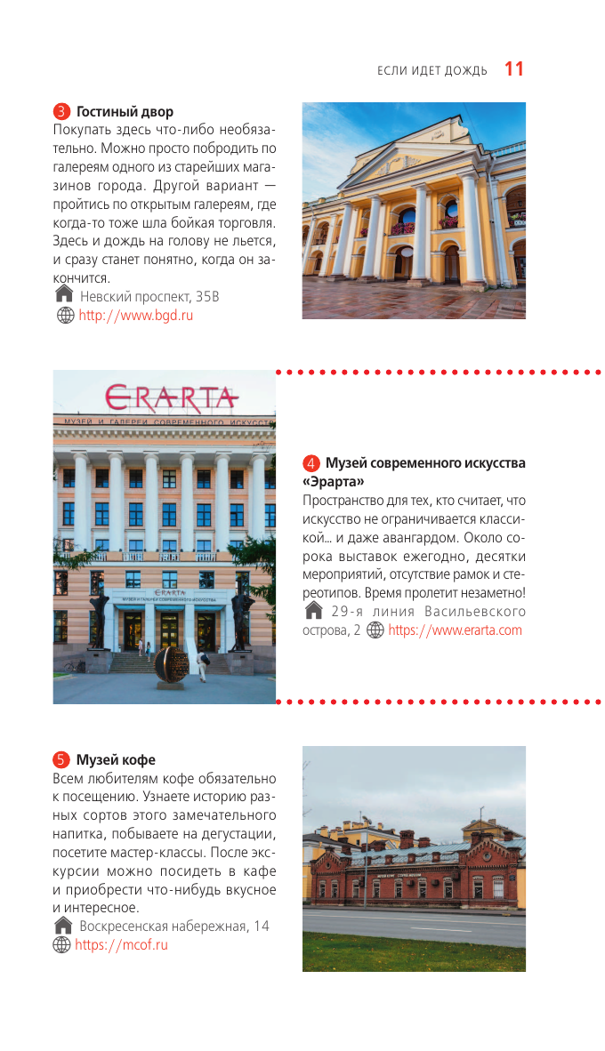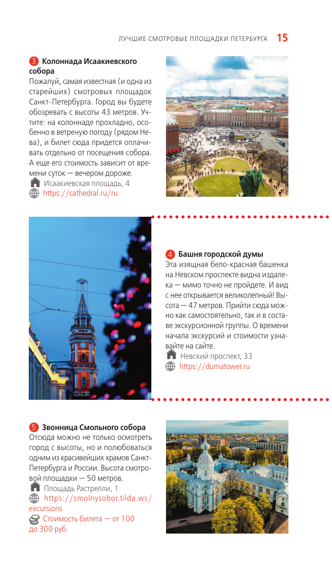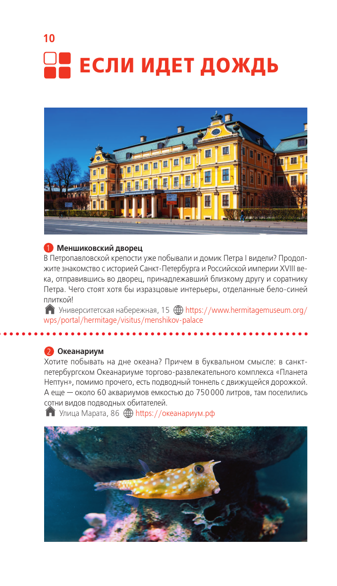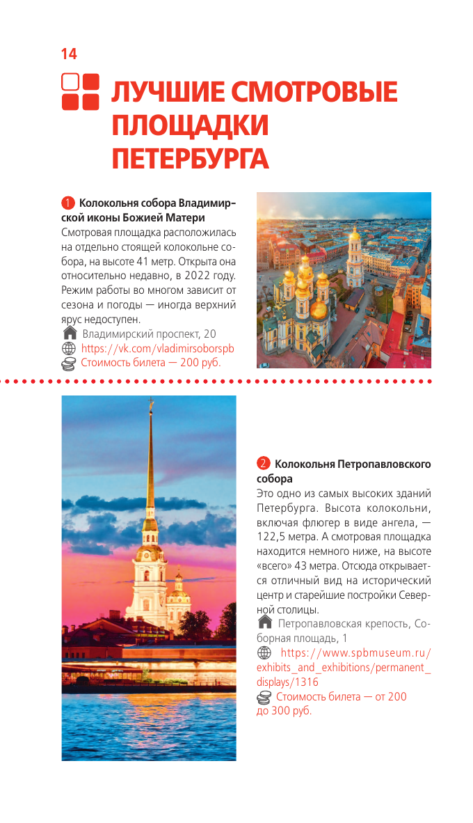 В нем содержится актуальная и полезная информация о главных достопримечательностях, различные маршруты на любой вкус, подсказки, что делать, если идет дождь, какие места можно посетить совершенно бесплатно или где искать лучшие смотровые площадки, а также множество полезных авторских советов.