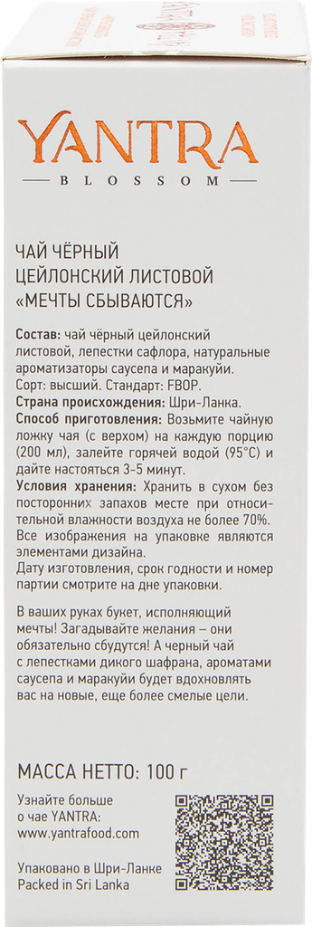 Чай черный листовой Yantra Blossom. с саусепом и маракуйей "Мечты сбываются" 100 г