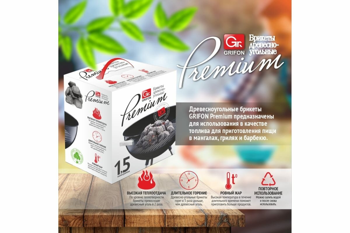 Древесноугольные брикеты Grifon 15 кг premium eco
