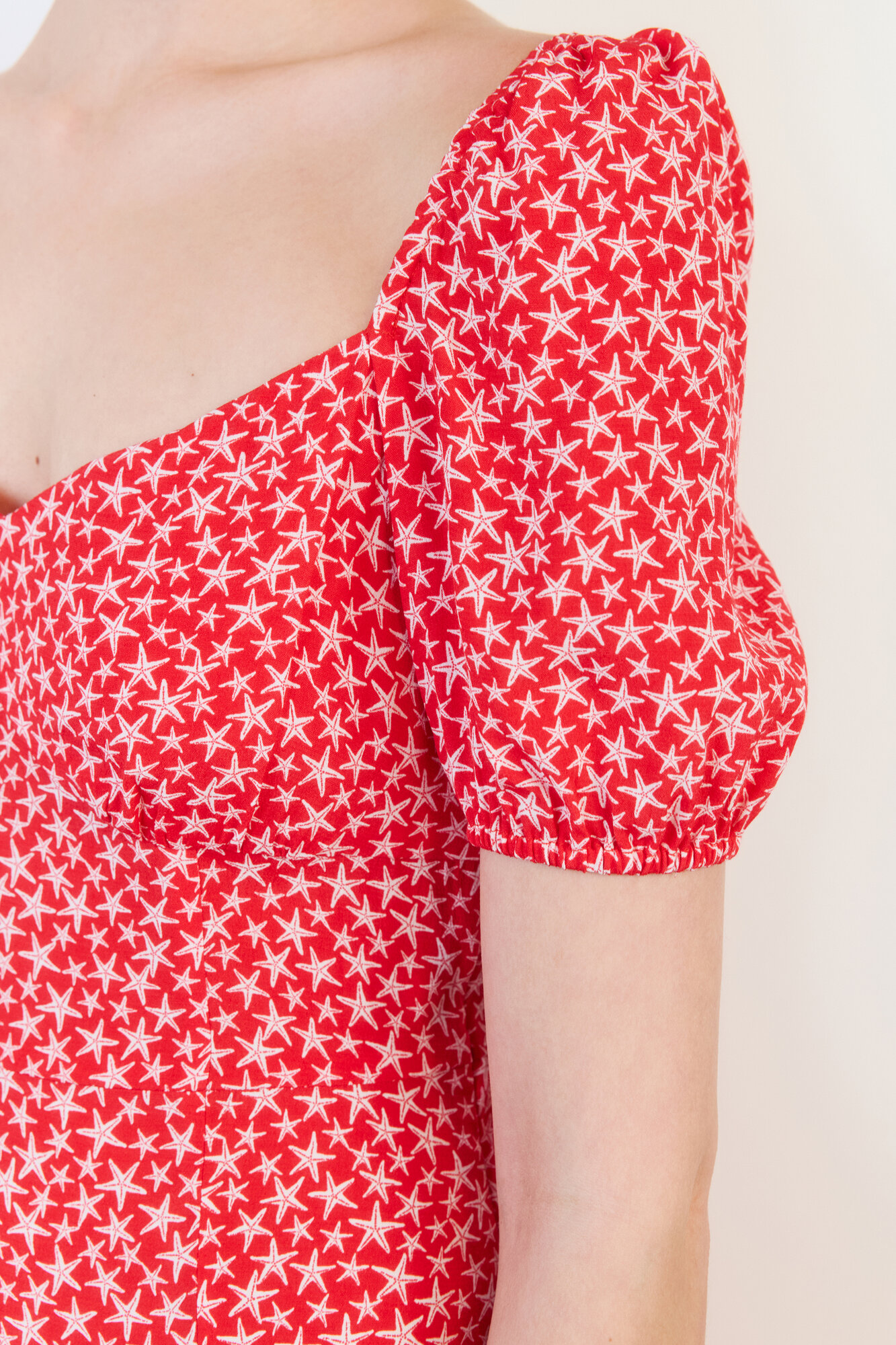 - Короткие рукава-фонарики с эластичными манжетами на резинке