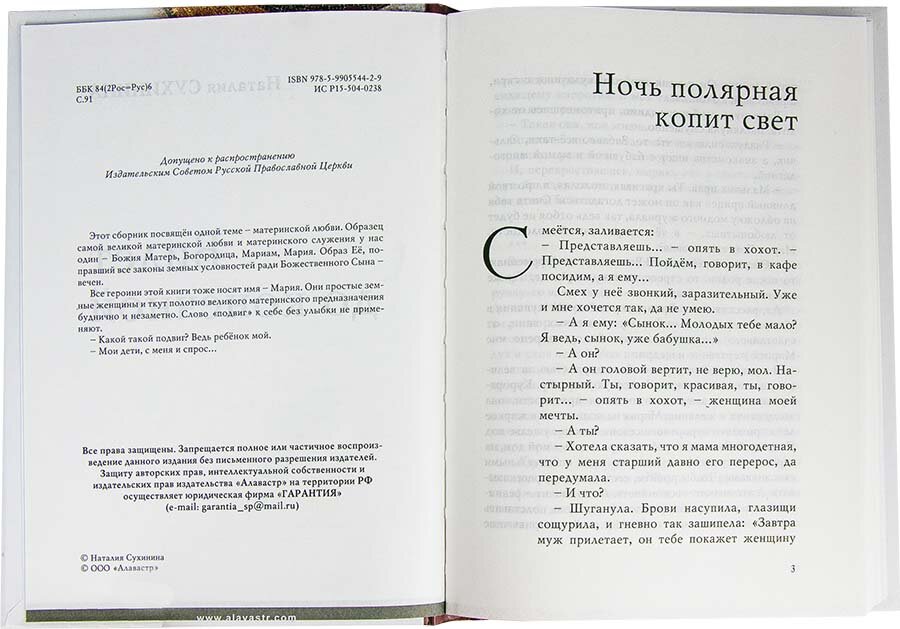 Этот сборник посвящен одной теме - материнской любви. Образец самой великой материнской любви и материнского служения у нас один - Божия Матерь, Богородица, Мариам, Мария. Образ Ее, поправший все законы земных условностей ради Божественного Сына - вечен. Все героини этой книги тоже носят имя - Мария. Они простые земные женщины и ткут полотно великого материнского предназначения буднично и незаметно. Слово "подвиг" к себе без улыбки не применяют. - Какой такой подвиг? Ведь ребенок мой. - Мои дети, с меня и спрос.