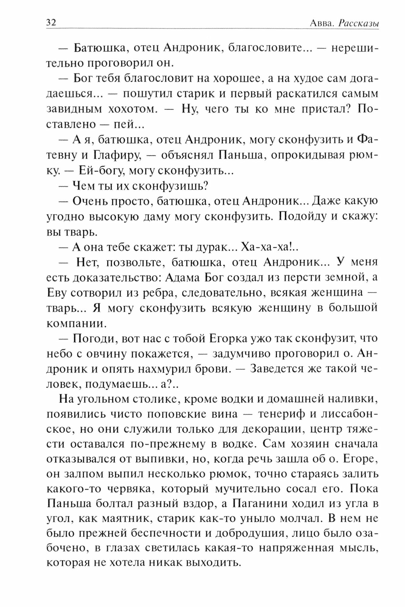 "Прежде сосуды по церквам были деревянные, да попы золотые, а нынче сосуды стали золотые, так попы деревянные. " Эти слова самобытного русского писателя Д. Н. Мамина-Сибиряка, сказанные им через одного из своих героев, самым лучшим образом представляют читателю то, о чем эта книга. Столкновение старого и нового типа русского православного священника, старого и нового характера исповедания веры является главное темой в "Авве" и других рассказах, вошедших в этот сборник.