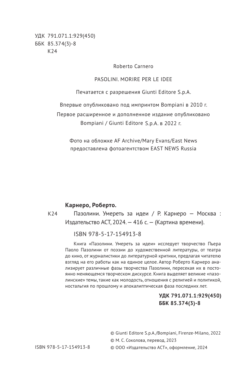 Пазолини. Умереть за идеи (Роберто Карнеро); Издательство АСТ, 2022