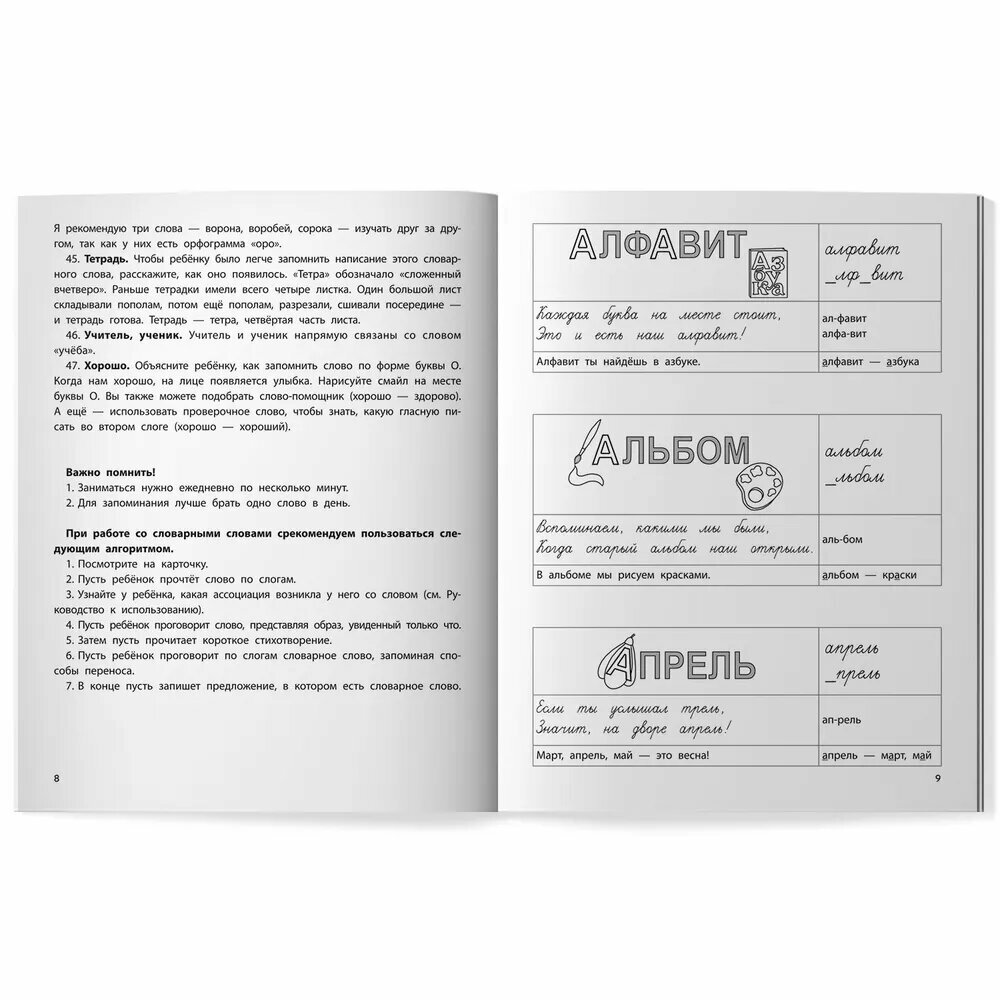 Словарные слова - один из сложных разделов в начальной школе. Если проблема с их запоминанием не решена, то она превращается в тяжелый груз. Нерешенные проблемы в начальной школе, естественно, влияют на дальнейшее обучение ребенка. Перед вами тренажер для учащихся 1-4 классов, представляющий собой задания для запоминания словарных слов. Все представленные в сборнике словарные слова легко запомнить при помощи авторской методики (создания зрительного образа или подбора слов-помощников).