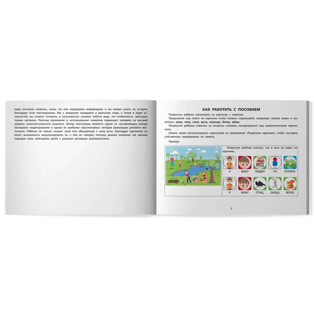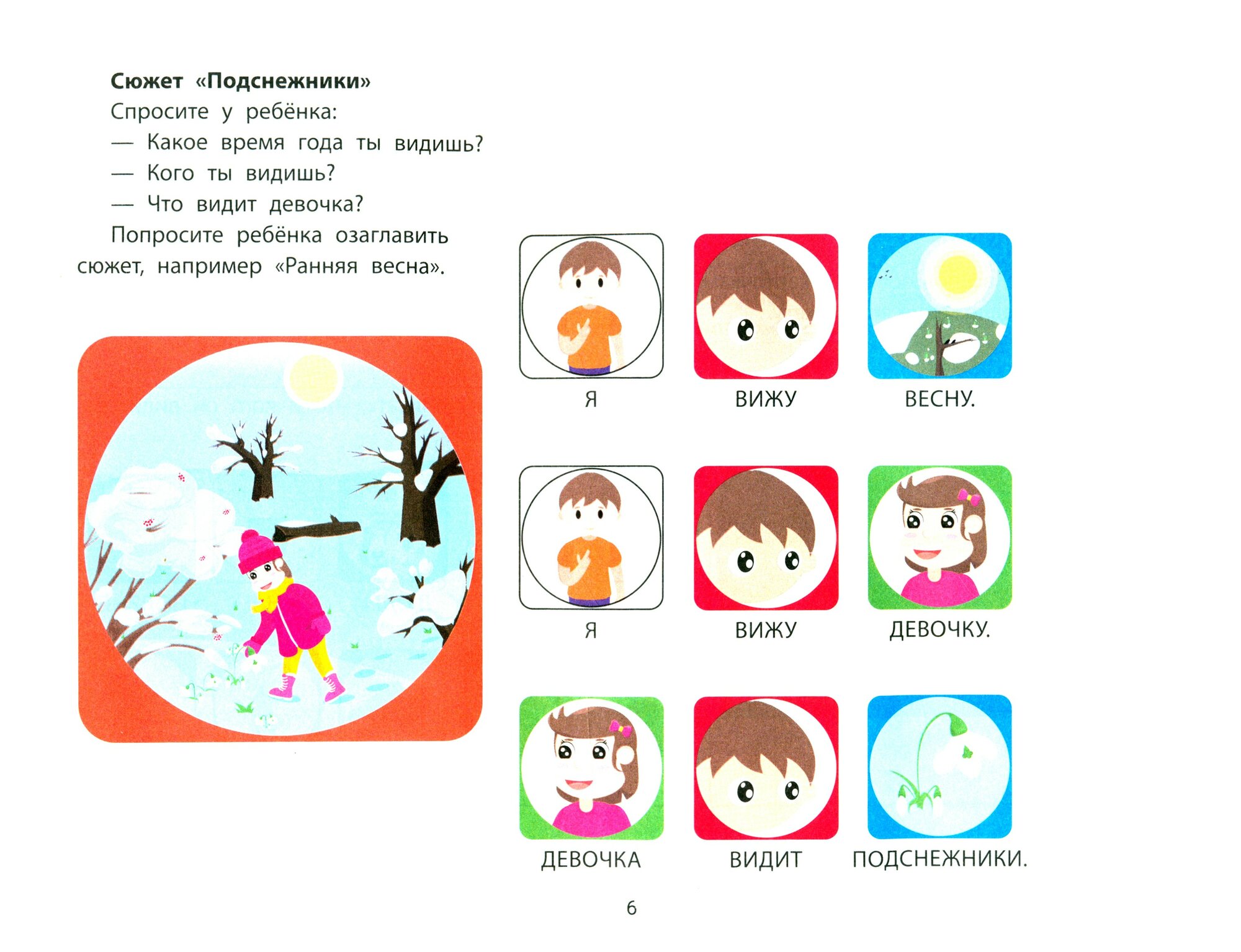 Это издание поможет ребенку конструировать предложения и составлять рассказы по сюжетным картинкам из данного альбома. Материал разработан для детей разного уровня языкового развития, в том числе и для тех, у которых есть сложности со спонтанной речью. К каждому сюжету прилагаются фразы для чтения. Ребенок с помощью наглядного моделирования предложения автоматизирует навык построения фраз, обогащая словарный запас и постигая азы чтения.