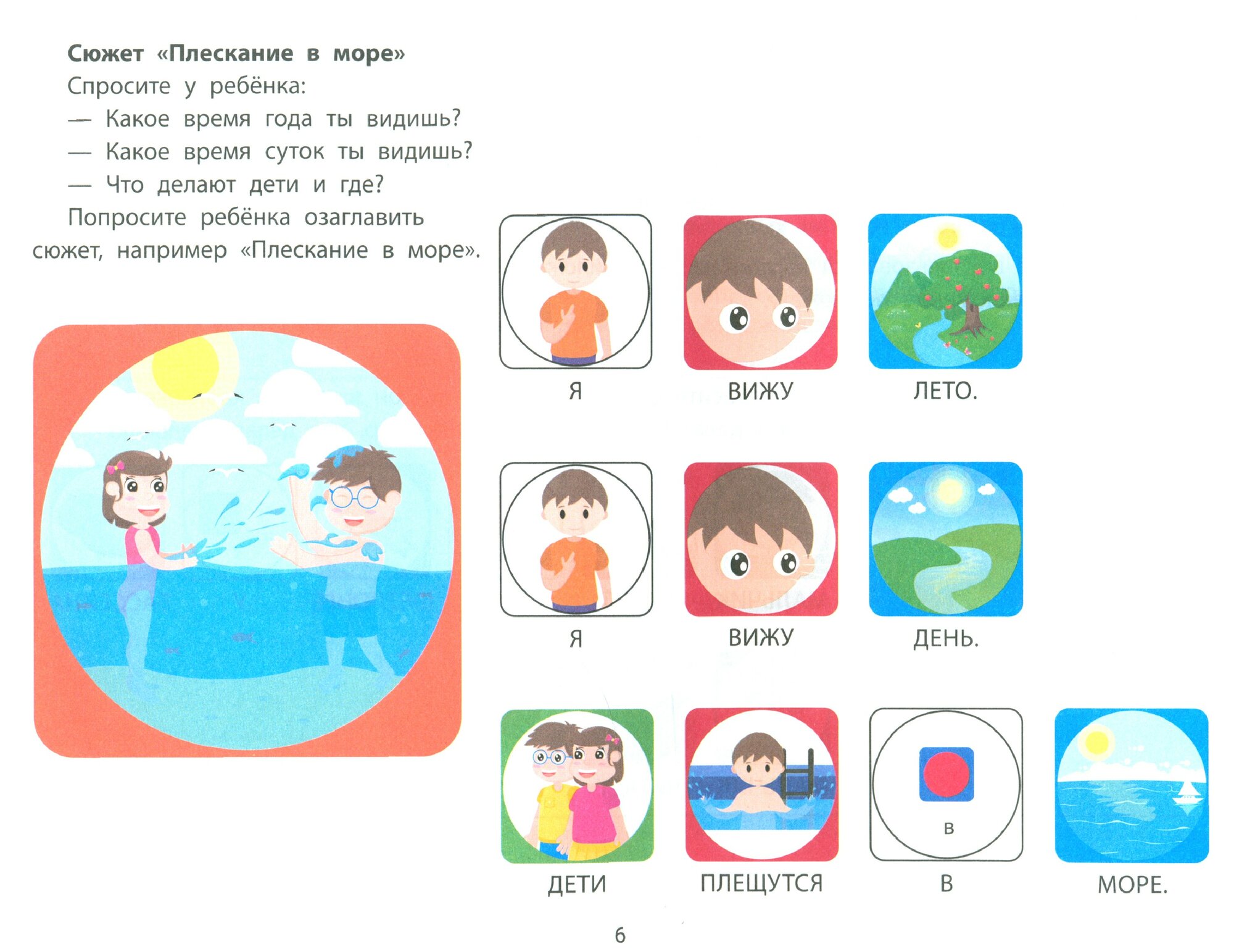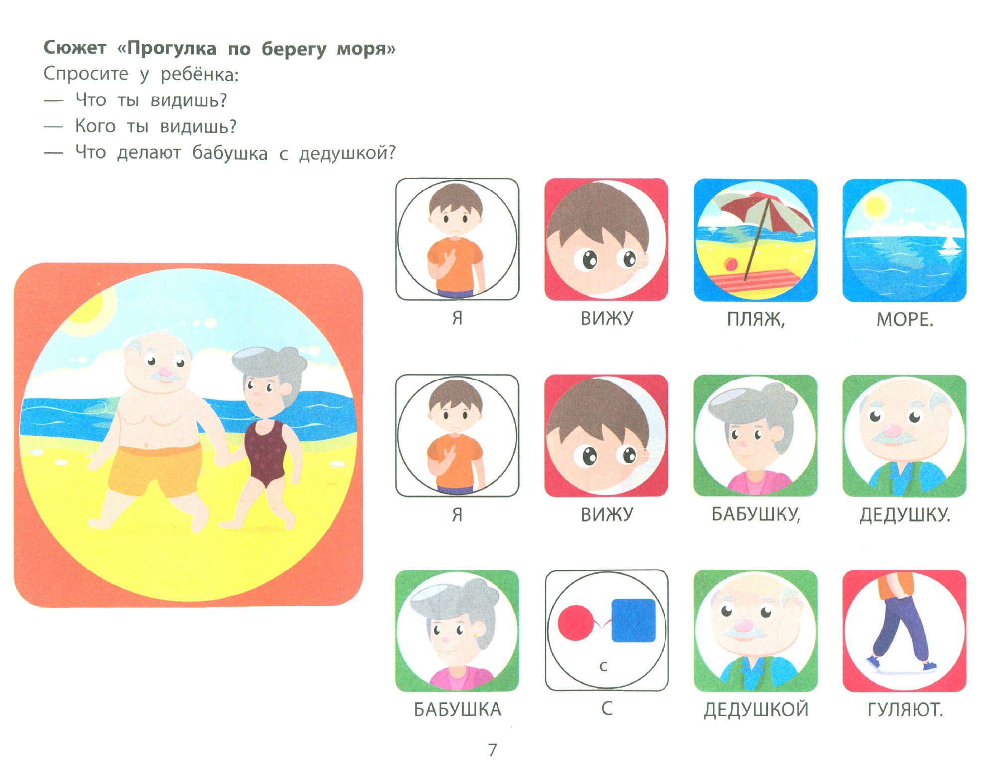Это издание поможет ребенку конструировать предложения и составлять рассказы по сюжетным картинкам из данного альбома. Материал разработан для детей разного уровня языкового развития, в том числе и для тех, у которых есть сложности со спонтанной речью. К каждому сюжету прилагаются фразы для чтения. Ребенок с помощью наглядного моделирования предложения автоматизирует навык построения фраз, обогащая словарный запас и постигая азы чтения.