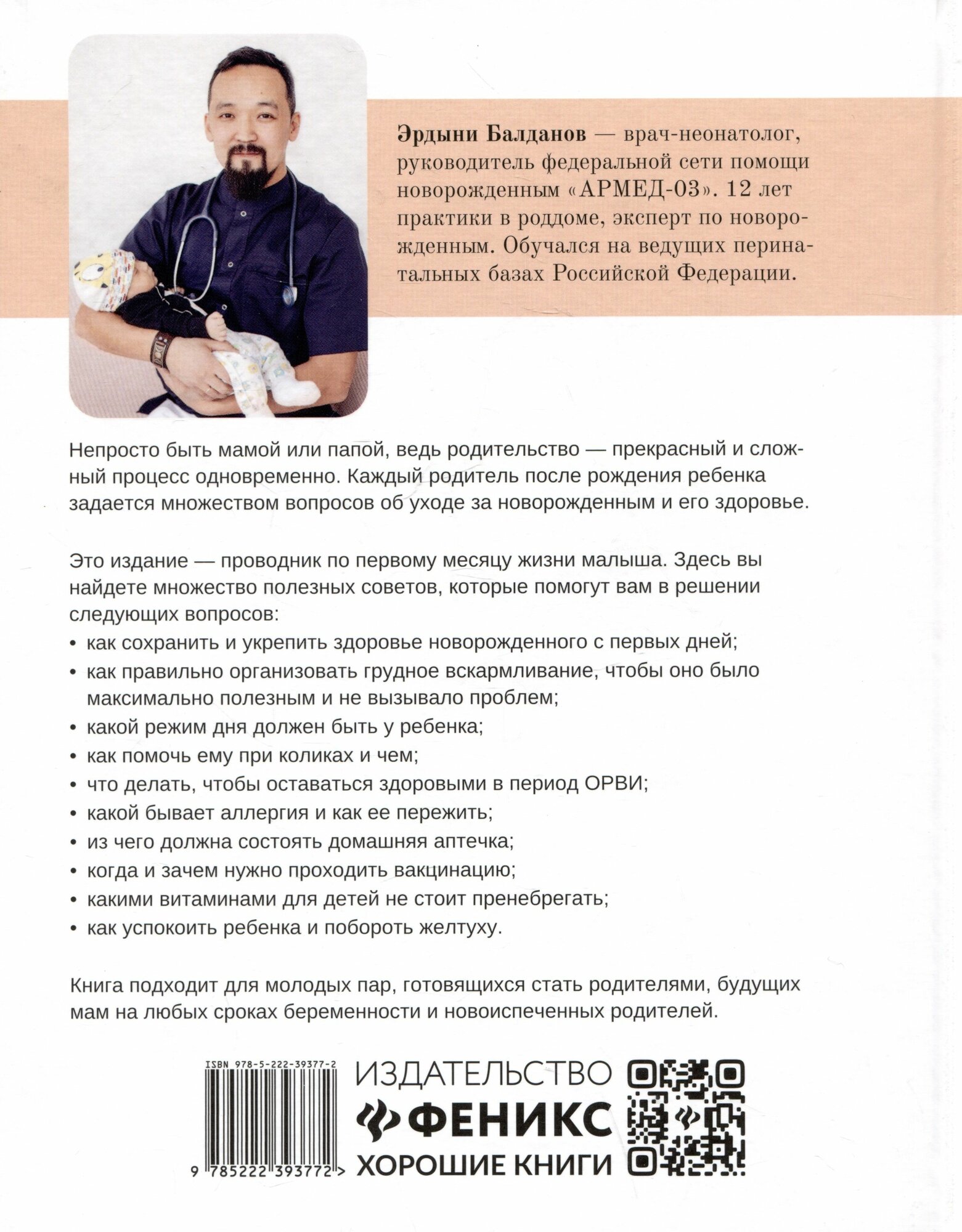 Непросто быть мамой или папой, ведь родительство - прекрасный и сложный процесс одновременно. Каждый родитель после рождения ребенка задается множеством вопросов об уходе за новорожденным и его здоровье. Это издание - проводник по первому месяцу жизни малыша. Здесь вы найдете множество полезных советов, которые помогут вам в решении следующих вопросов: - как сохранить и укрепить здоровье новорожденного с первых дней; - как правильно организовать грудное вскармливание, чтобы оно было максимально полезным и не вызывало проблем; - какой режим дня должен быть у ребенка; - как помочь ему при коликах и чем; - что делать, чтобы оставаться здоровыми в период ОРВИ; - какой бывает аллергия и как ее пережить; - из чего должна состоять домашняя аптечка; - когда и зачем нужно проходить вакцинацию; - какими витаминами для детей не стоит пренебрегать; - как успокоить ребенка и побороть желтуху.