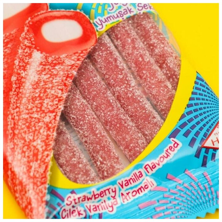 Кислые мармеладные палочки с нежной начинкой внутри это лакомство, в котором собрано все самое лучшее от мира мармелада! Здесь вы найдете великолепное кисло-сладкое сочетание вкусов и дуэт клубники и ванили. Такое гармоничное сочетание удивит каждого!