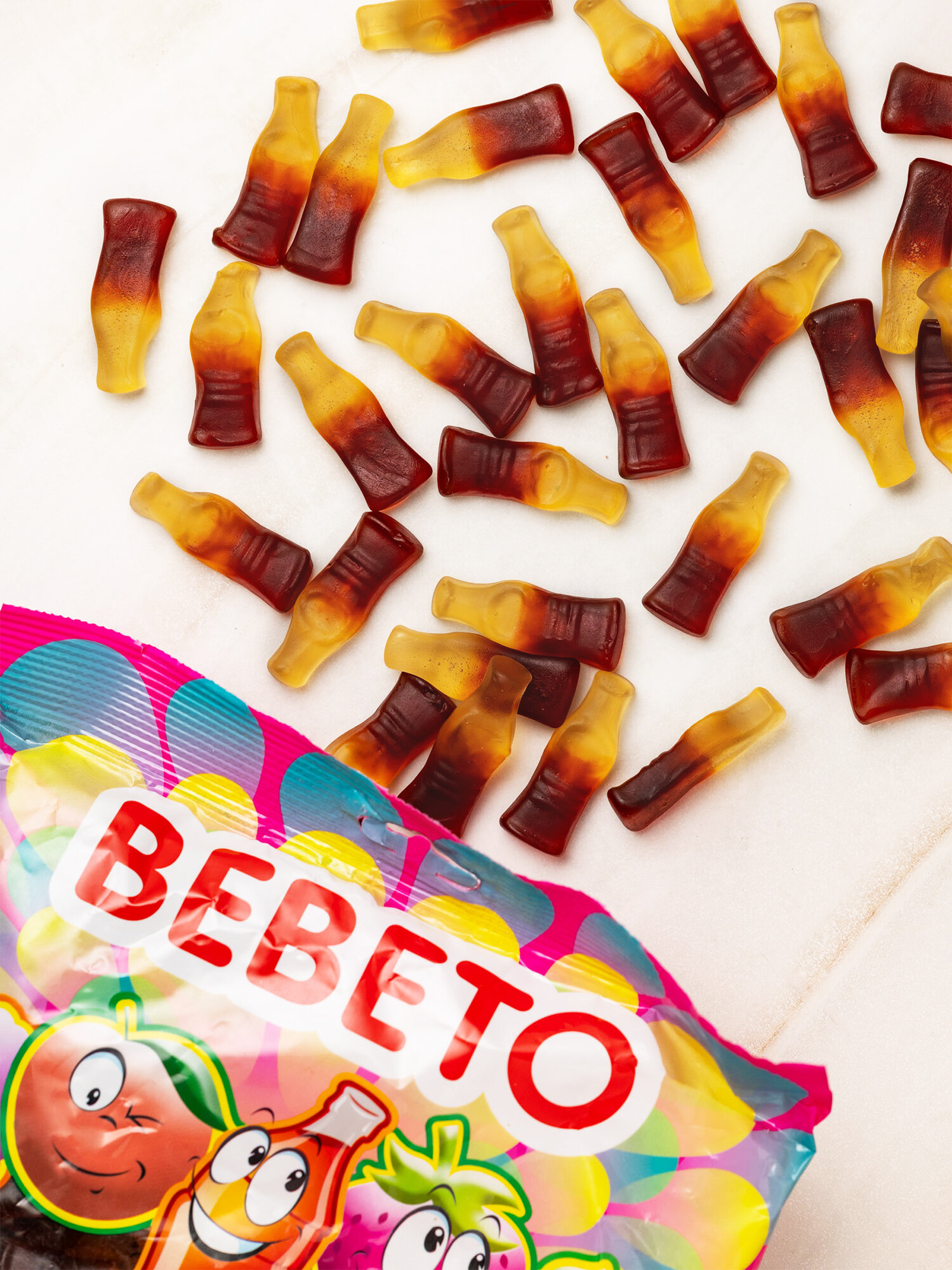 Мы создали маленькие мармеладные копии всеми любимой газировки. Оцените мармелад с ярким вкусом Колы и поделитесь им вместе с друзьями, его хватит на всех.