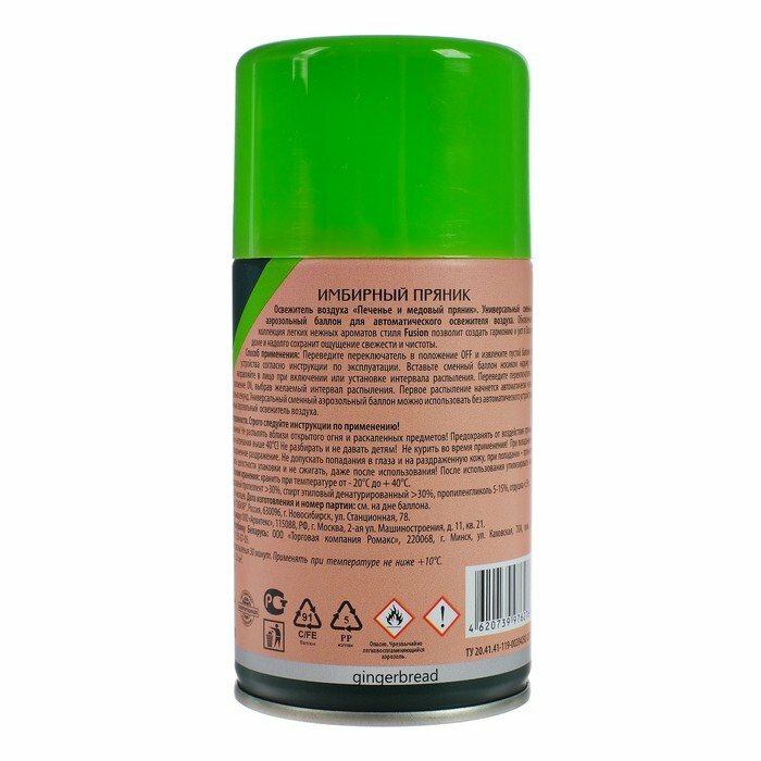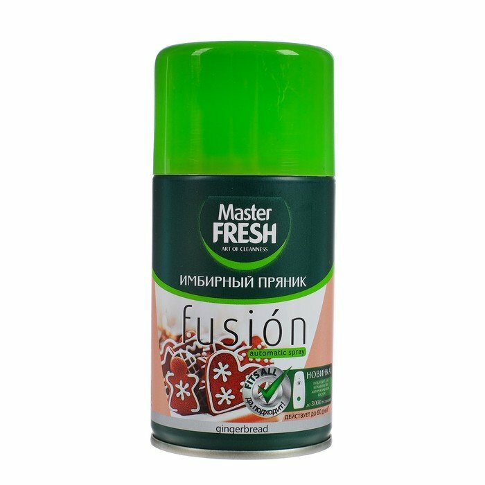 Сменный баллон освежителя воздуха Master Fresh подходит для большинства автоматических систем. Предназначен для постоянной ароматизации воздуха в любом помещении. Действует до 60 дней. Позволит создать гармонию и уют в вашем доме и надолго сохранит ощущение свежести и чистоты. Обновленная коллекция в стиле Fusion наполнит помещение легким и нежным ароматом имбирной выпечки.