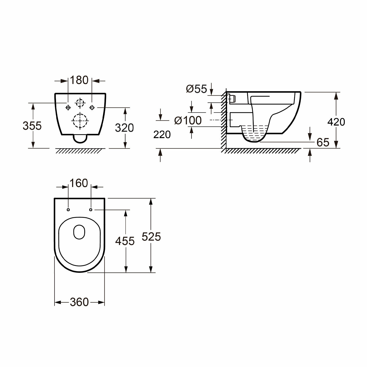 Подвесной унитаз Wellsee предназначен для установки совместно с системой инсталлции и имеет длину 52.5 см.
