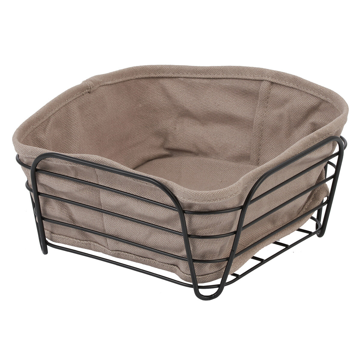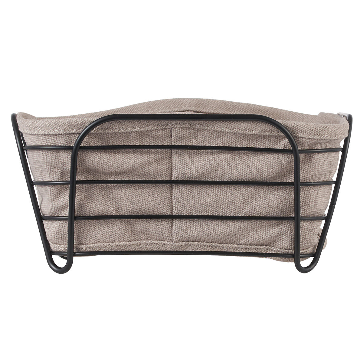 Стильная квадратная корзинка для хлеба, покрытая эмалью черного цвета с текстильной вставкой серого цвета, идеально сочетается с современным дизайном кухни.