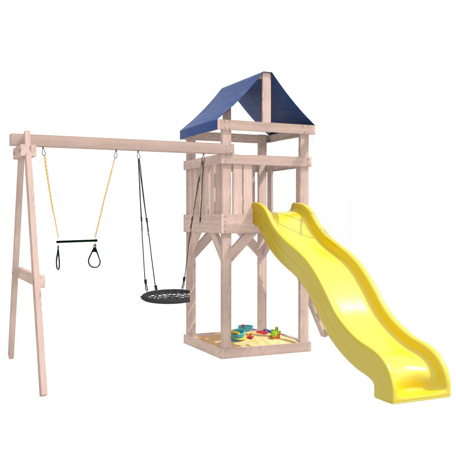 Детская площадка National Tree Company Детская площадка неокрашенная Сlassic с трапецией и качелями гнездо 60 см IgroWoods