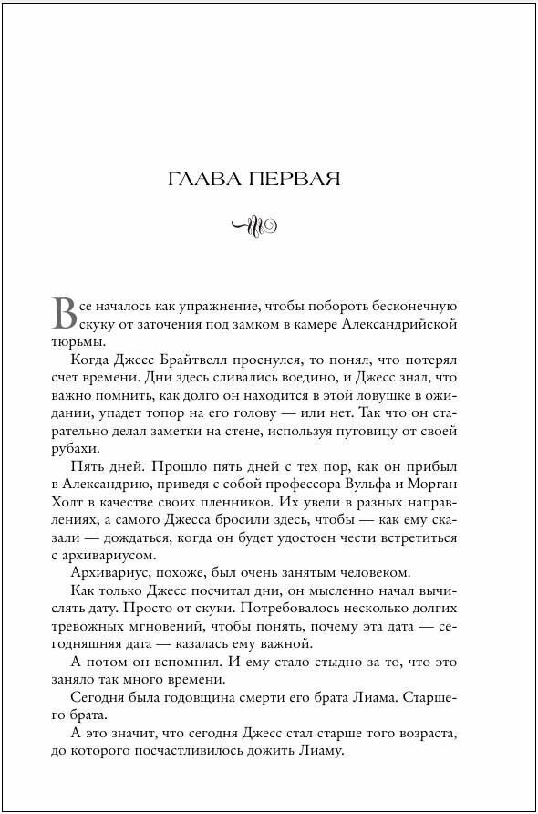 Джесс Брайтвелл предал всех, кто когда-либо ему доверял. Он отправил свою возлюбленную Морган обратно в Железную башню, где она проведет остаток дней. Обманом заманил профессора Вулфа в тюрьму и обрек его на смертный приговор. И все ради глупой идеи о том, что он может каким-то чудом остановить Библиотеку. Для того, чтобы встретиться с Великим архивариусом и предложить ему сделку, Джессу придется выдать себя за своего брата-близнеца Брендана. Но повелителя Библиотеки перехитрить не так-то просто.